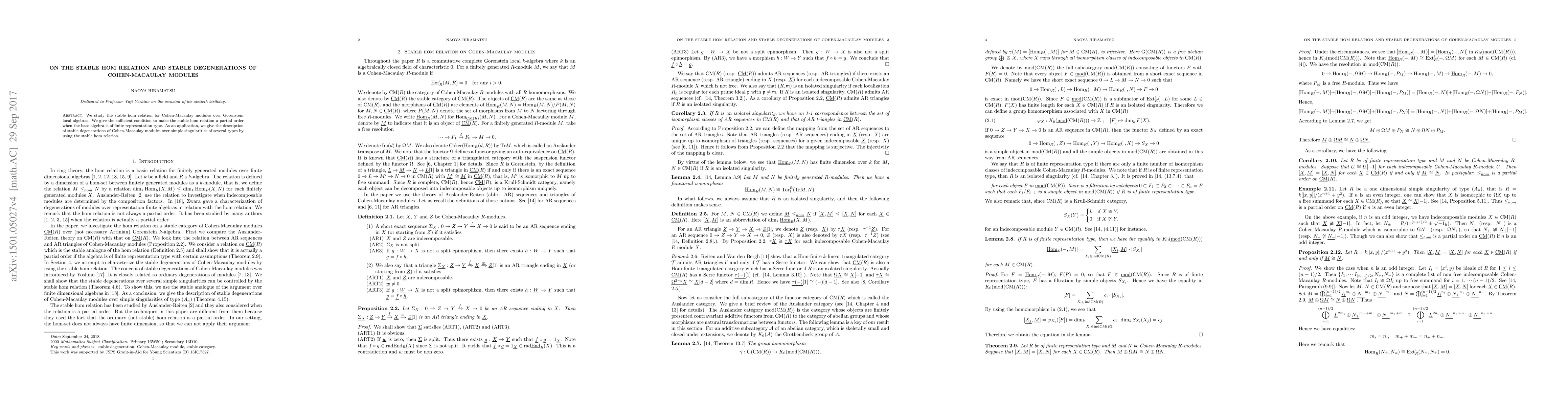 This paper investigates the stable hom relation for Cohen-Macaulay modules over Gorenstein local algebras, providing conditions under which it becomes a partial order for algebras of finite representation type. It applies this to describe stable degenerations of Cohen-Macaulay modules associated with specific simple singularities.