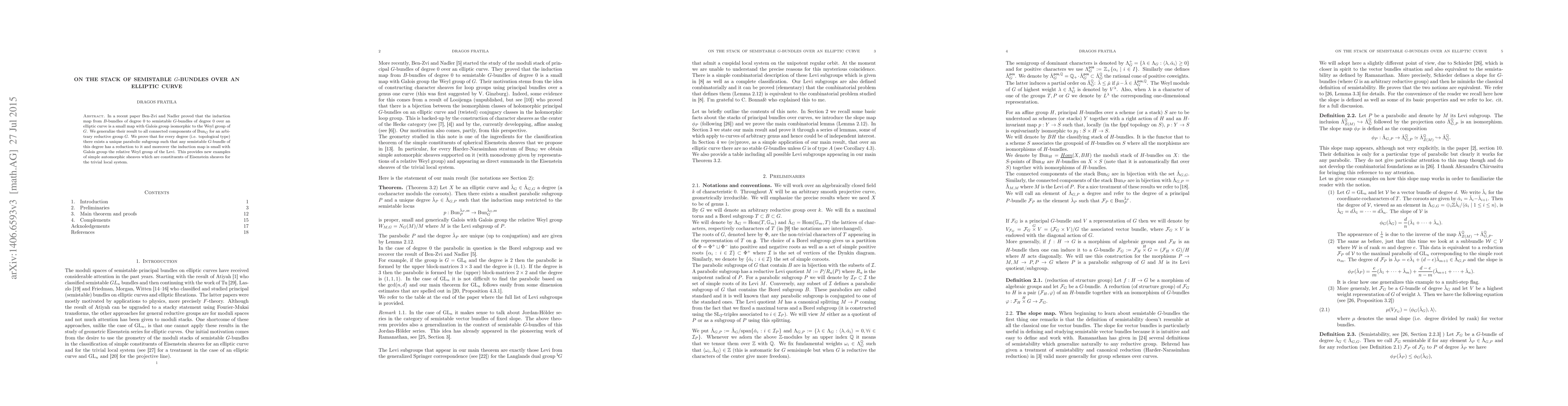 In a recent paper Ben-Zvi and Nadler proved that the induction map from $B$-bundles of degree 0 to semistable $G$-bundles of degree 0 over an elliptic curve is a small map with Galois group isomorphic to the Weyl group of $G$. We generalize their result to all connected components of $\Bun_G$ for an arbitrary reductive group $G$. We prove that for every degree (i.e. topological type) there exists a unique parabolic subgroup such that any semistable $G$\nobreakdash-bundle of this degree has a reduction to it and moreover the induction map is small with Galois group the relative Weyl group of the Levi. This provides new examples of simple automorphic sheaves which are constituents of Eisenstein sheaves for the trivial local system.
