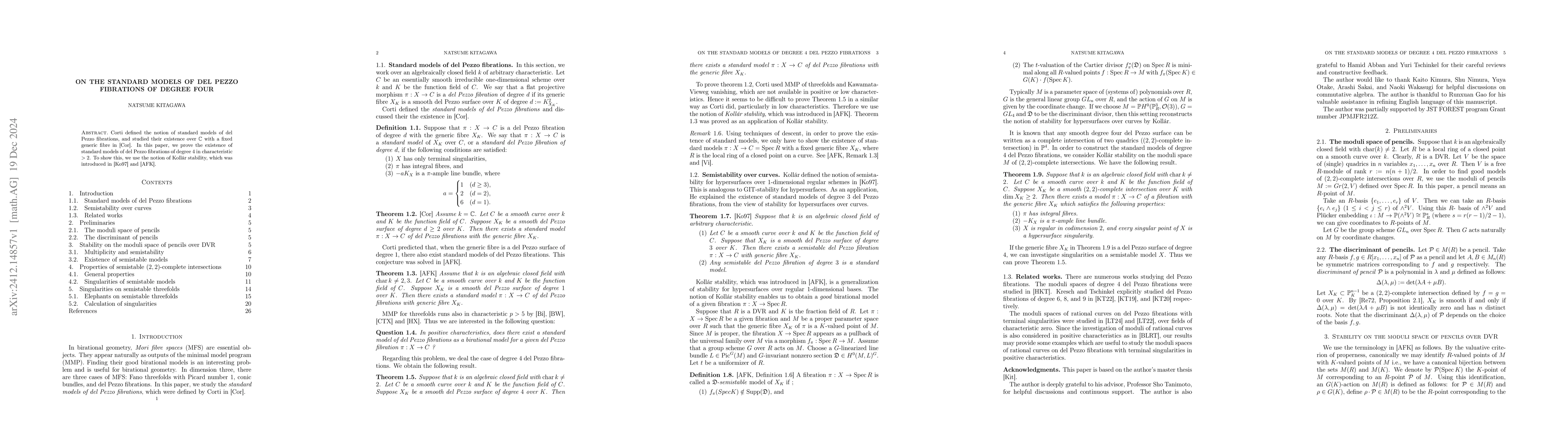 Two-Line Summary: This paper proves the existence of standard models of del Pezzo fibrations of degree four in characteristic greater than 2, utilizing the concept of Kollár stability introduced by Kollár and collaborators. The work builds on Corti's foundational definition and explores its implications in complex geometry.