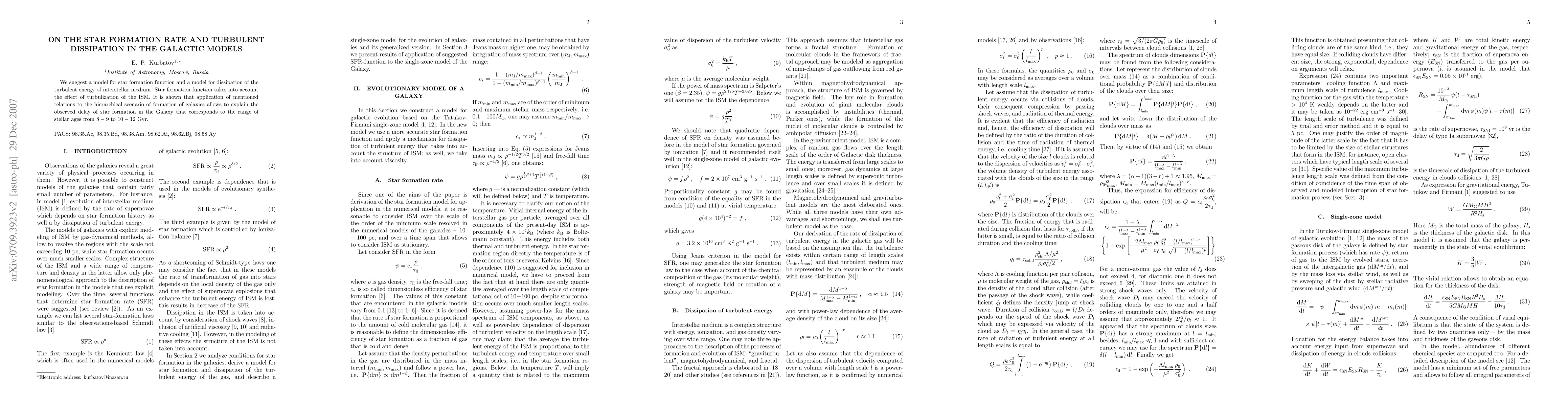 We suggest a model for star formation function and a model for dissipation of the turbulent energy of interstellar medium. Star formation function takes into account the effect of turbulization of the ISM. It is shown that application of mentioned relations to the hierarchical scenario of formation of galaxies allows to explain the observed delay of star formation in the Galaxy that corresponds to the range of stellar ages from 8--9 to 10--12 Gyr.