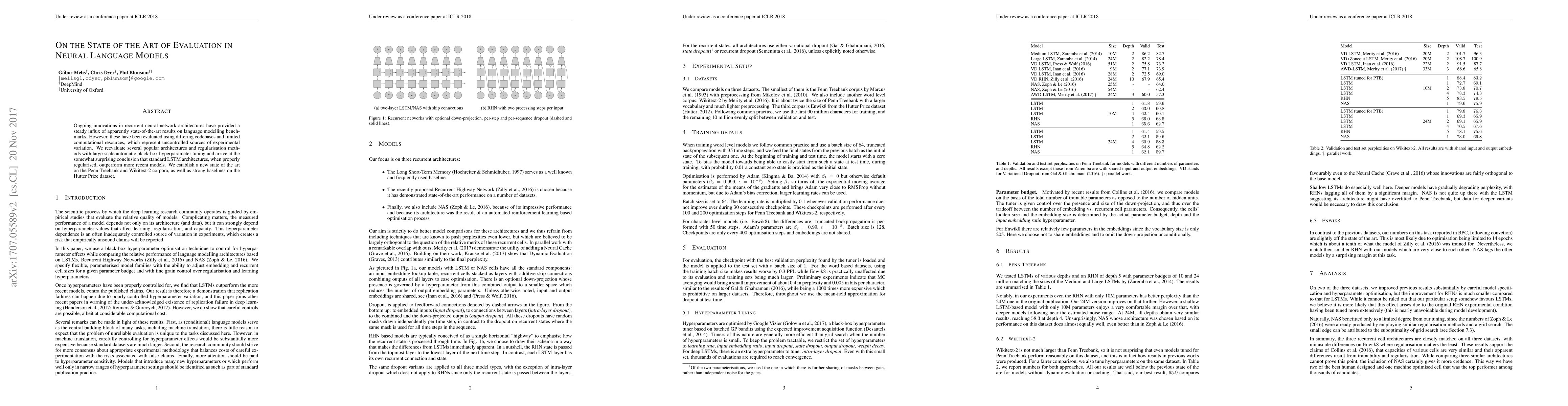 Ongoing innovations in recurrent neural network architectures have provided a steady influx of apparently state-of-the-art results on language modelling benchmarks. However, these have been evaluated using differing code bases and limited computational resources, which represent uncontrolled sources of experimental variation. We reevaluate several popular architectures and regularisation methods with large-scale automatic black-box hyperparameter tuning and arrive at the somewhat surprising conclusion that standard LSTM architectures, when properly regularised, outperform more recent models. We establish a new state of the art on the Penn Treebank and Wikitext-2 corpora, as well as strong baselines on the Hutter Prize dataset.