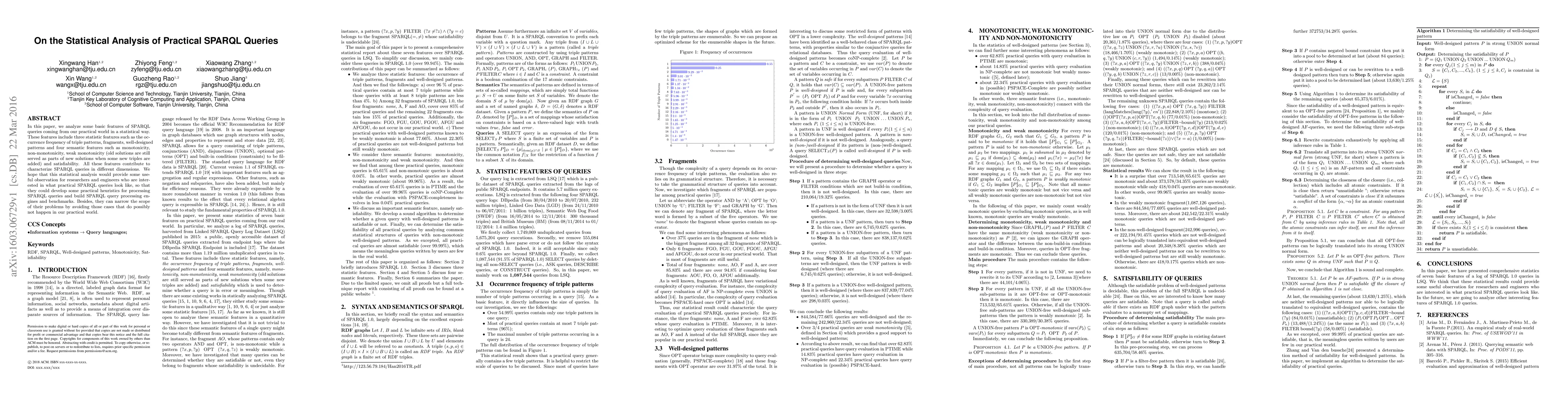 This paper statistically analyzes practical SPARQL queries, focusing on frequency and semantic features like monotonicity. The goal is to provide insights for developing heuristics and benchmarks for SPARQL query processing engines.