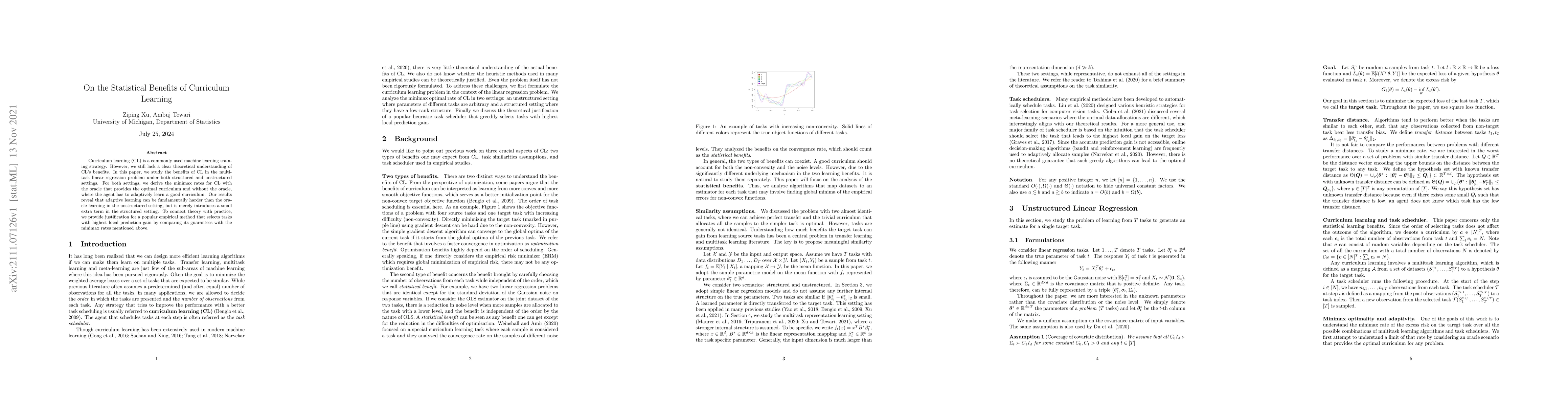 This research paper explores the benefits of curriculum learning in machine learning, showing that adaptive learning can introduce additional challenges but also offers small gains, particularly in structured settings. The study provides theoretical justifications for popular empirical methods used to select tasks with high local prediction gain.