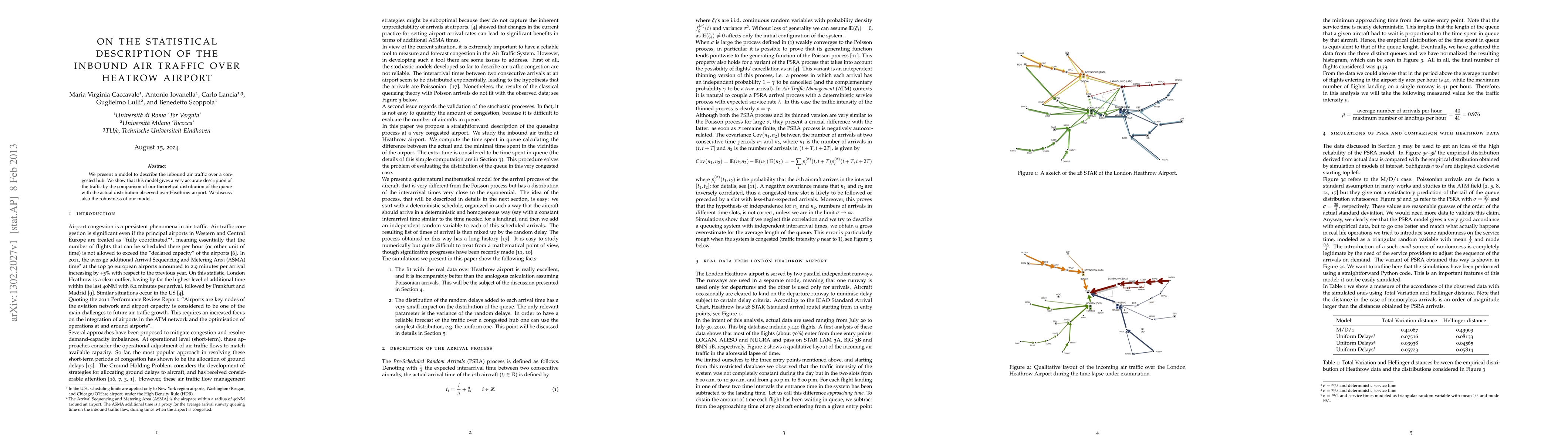 We present a model to describe the inbound air traffic over a congested hub. We show that this model gives a very accurate description of the traffic by the comparison of our theoretical distribution of the queue with the actual distribution observed over Heathrow airport. We discuss also the robustness of our model.
