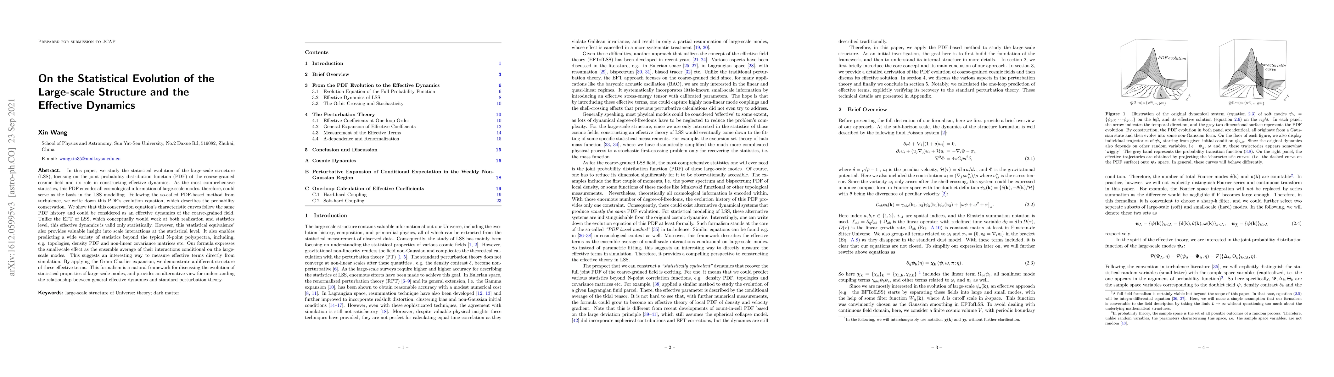 This paper investigates the statistical evolution of the large-scale structure (LSS) using the joint probability distribution function (PDF) of the coarse-grained cosmic field to construct effective dynamics. It demonstrates that the PDF's evolution equation, based on probability conservation, provides a statistical effective dynamics for LSS modeling, offering insights into scale interactions and enabling predictions of various statistical properties beyond typical N-point polyspectra.