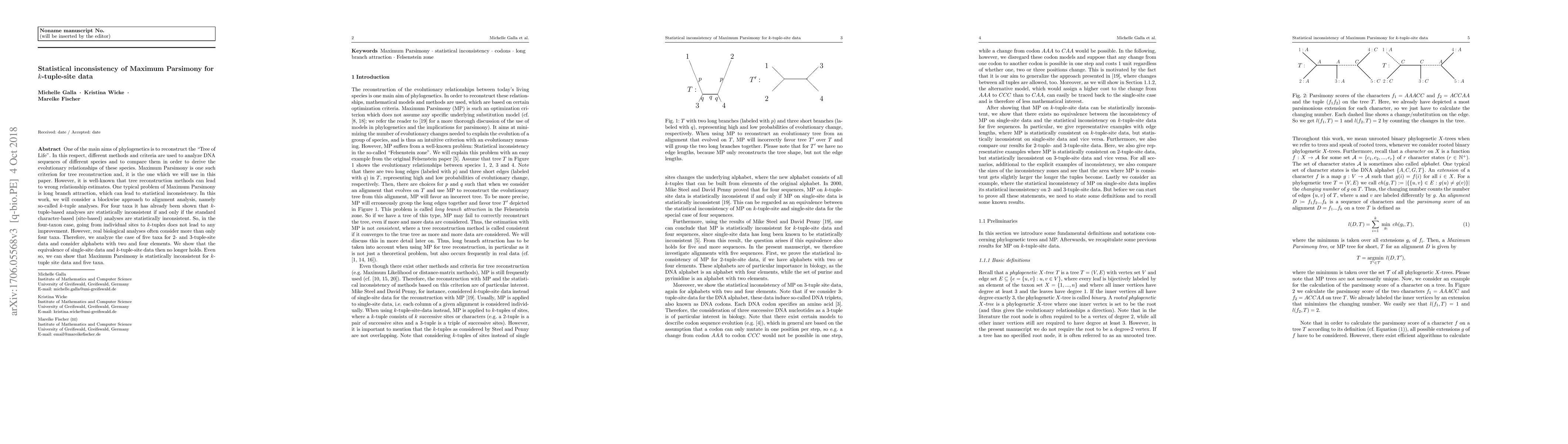 Maximum Parsimony is statistically inconsistent for analyzing DNA sequences in larger groups than four species, even when using $k$-tuple data, which can lead to incorrect evolutionary relationship estimates.