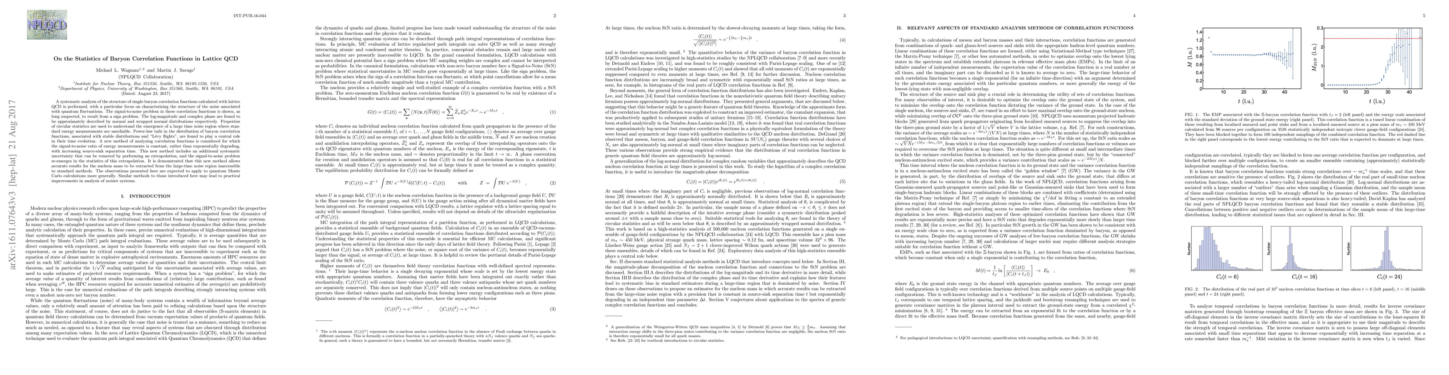 A systematic analysis of the structure of single-baryon correlation functions calculated with lattice QCD is performed, with a particular focus on characterizing the structure of the noise associated with quantum fluctuations. The signal-to-noise problem in these correlation functions is shown, as long suspected, to result from a sign problem. The log-magnitude and complex phase are found to be approximately described by normal and wrapped normal distributions respectively. Properties of circular statistics are used to understand the emergence of a large time noise region where standard energy measurements are unreliable. Power-law tails in the distribution of baryon correlation functions, associated with stable distributions and "Levy flights", are found to play a central role in their time evolution. A new method of analyzing correlation functions is considered for which the signal-to-noise ratio of energy measurements is constant, rather than exponentially degrading, with increasing source-sink separation time. This new method includes an additional systematic uncertainty that can be removed by performing an extrapolation, and the signal-to-noise problem re-emerges in the statistics of this extrapolation. It is demonstrated that this new method allows accurate results for the nucleon mass to be extracted from the large-time noise region inaccessible to standard methods. The observations presented here are expected to apply to quantum Monte Carlo calculations more generally. Similar methods to those introduced here may lead to practical improvements in analysis of noisier systems.