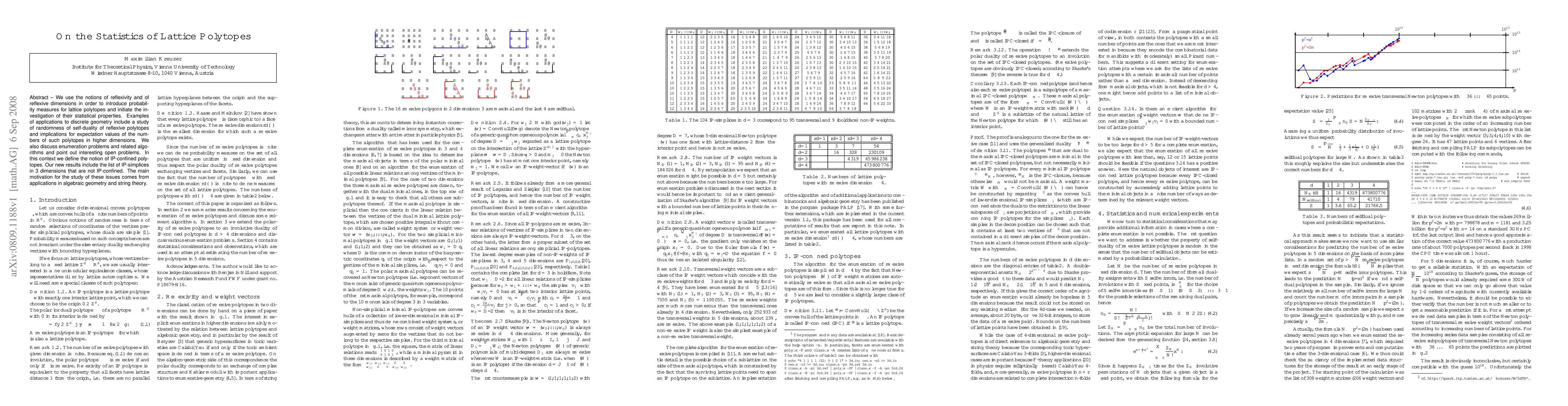 This paper introduces probability measures for lattice polytopes using reflexivity and explores their statistical properties, including the randomness of self-duality and implications for higher-dimensional polytope counts. It also discusses enumeration problems and algorithms, defining IP-confined polytopes and presenting new results on non-IP-confined IP-simplices in 3 dimensions, motivated by applications in algebraic geometry and string theory.