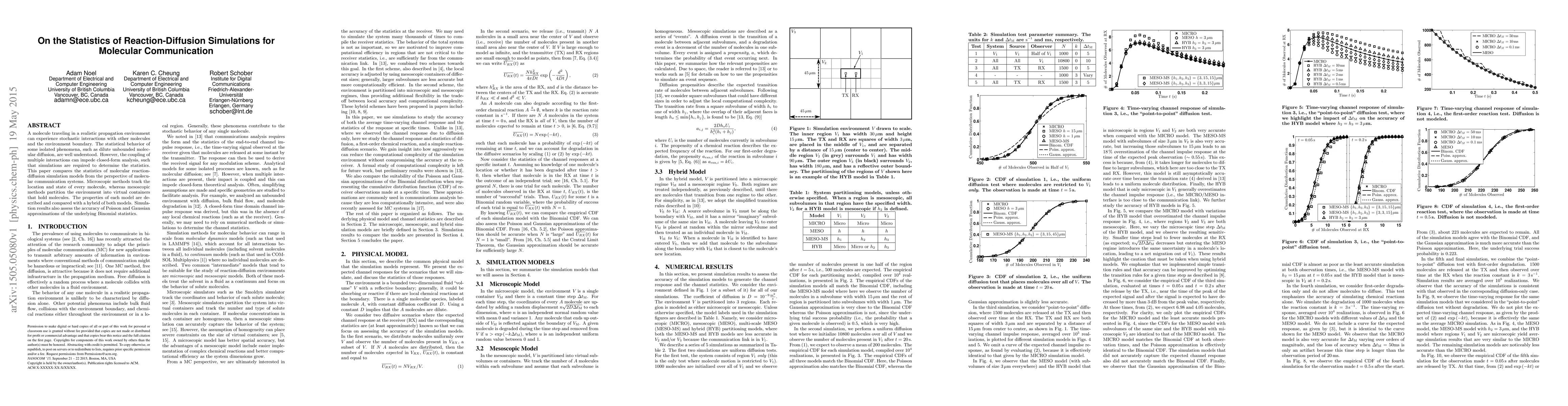 A molecule traveling in a realistic propagation environment can experience stochastic interactions with other molecules and the environment boundary. The statistical behavior of some isolated phenomena, such as dilute unbounded molecular diffusion, are well understood. However, the coupling of multiple interactions can impede closed-form analysis, such that simulations are required to determine the statistics. This paper compares the statistics of molecular reaction-diffusion simulation models from the perspective of molecular communication systems. Microscopic methods track the location and state of every molecule, whereas mesoscopic methods partition the environment into virtual containers that hold molecules. The properties of each model are described and compared with a hybrid of both models. Simulation results also assess the accuracy of Poisson and Gaussian approximations of the underlying Binomial statistics.