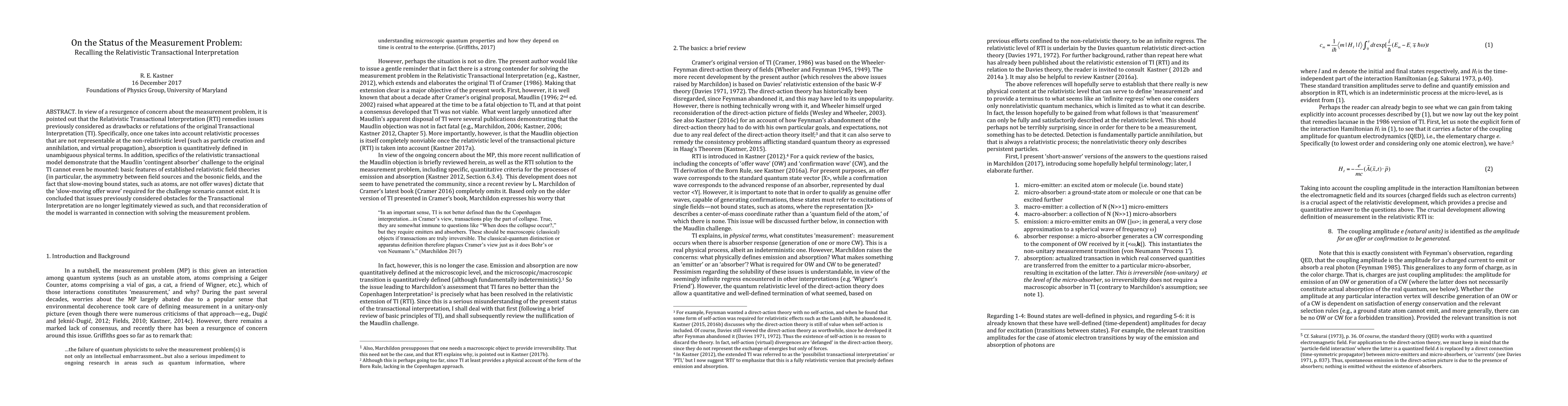 In view of a resurgence of concern about the measurement problem, it is pointed out that the Relativistic Transactional Interpretation (RTI) remedies issues previously considered as drawbacks or refutations of the original TI. Specifically, once one takes into account relativistic processes that are not representable at the non-relativistic level (such as particle creation and annihilation, and virtual propagation), absorption is quantitatively defined in unambiguous physical terms. In addition, specifics of the relativistic transactional model demonstrate that the Maudlin `contingent absorber' challenge to the original TI cannot even be mounted: basic features of established relativistic field theories (in particular, the asymmetry between field sources and the bosonic fields, and the fact that slow-moving bound states, such as atoms, are not offer waves) dictate that the `slow-moving offer wave' required for the challenge scenario cannot exist. It is concluded that issues previously considered obstacles for TI are no longer legitimately viewed as such, and that reconsideration of the transactional picture is warranted in connection with solving the measurement problem.