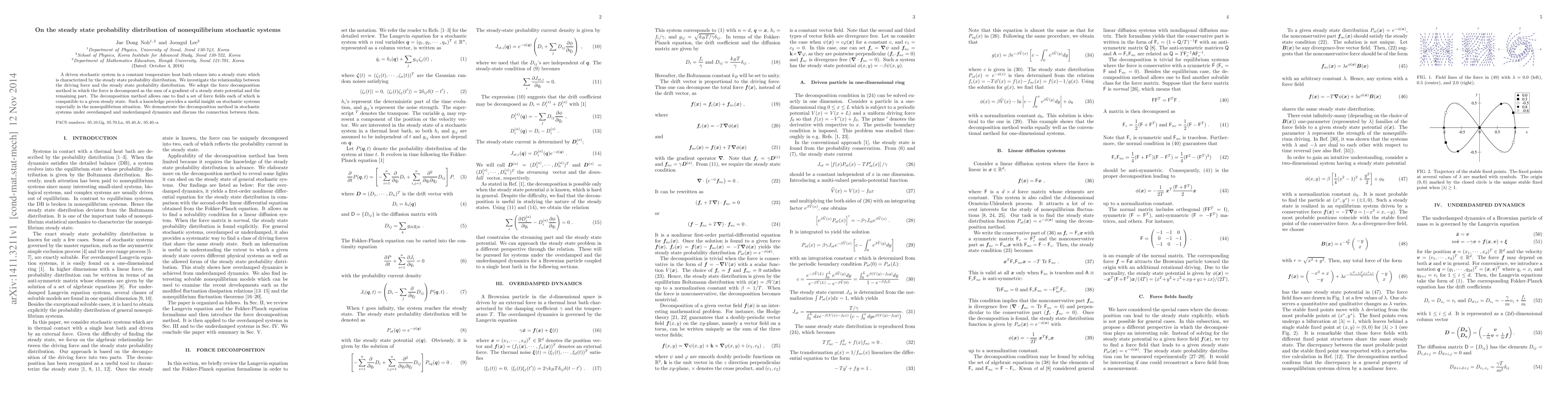 This paper investigates the steady state probability distribution of driven stochastic systems in a constant temperature heat bath, employing a force decomposition method to reveal compatible force fields. The method provides insights into nonequilibrium stochastic systems, demonstrated through both overdamped and underdamped dynamics.