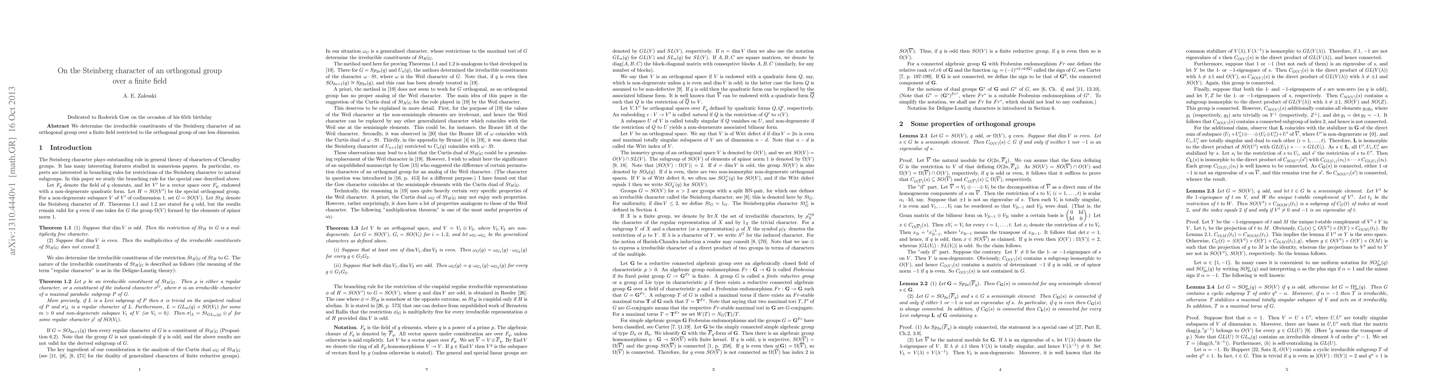 Summary: This paper identifies the irreducible constituents of the Steinberg character for an orthogonal group over a finite field when restricted to the orthogonal group of one lower dimension. The study provides insights into the character theory of these groups.