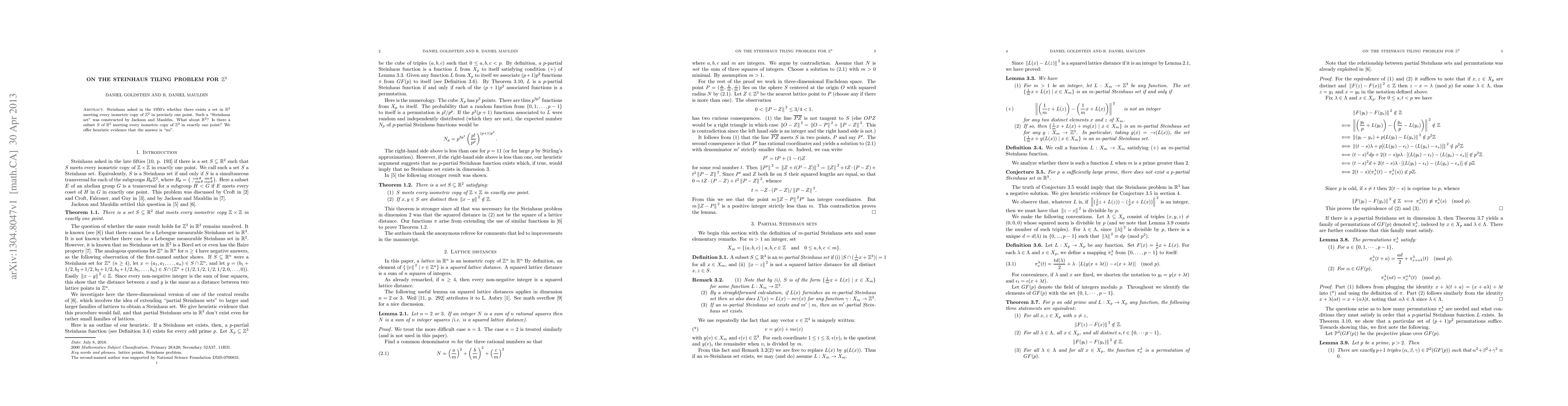 H. Steinhaus asked in the 1950's whether there exists a set in the plane R^2 meeting every isometric copy of Z^2 in precisely one point. Such a "Steinhaus set" was constructed by Jackson and Mauldin. What about three-space R^3? Is there a subset of R^3 meeting every isometric copy of Z^3 in exactly one point? We offer heuristic evidence that the answer is "no".