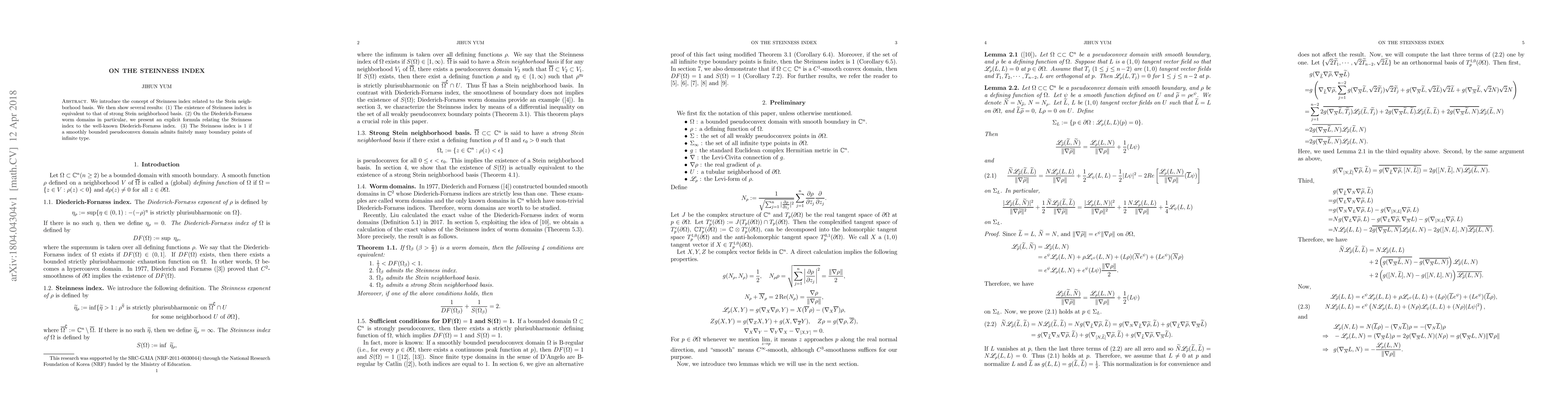 We introduce the concept of Steinness index related to the Stein neighborhood basis. We then show several results: (1) The existence of Steinness index is equivalent to that of strong Stein neighborhood basis. (2) On the Diederich-Forn{\ae}ss worm domains in particular, we present an explicit formula relating the Steinness index to the well-known Diederich-Forn{\ae}ss index. (3) The Steinness index is 1 if a smoothly bounded pseudoconvex domain admits finitely many boundary points of infinite type.