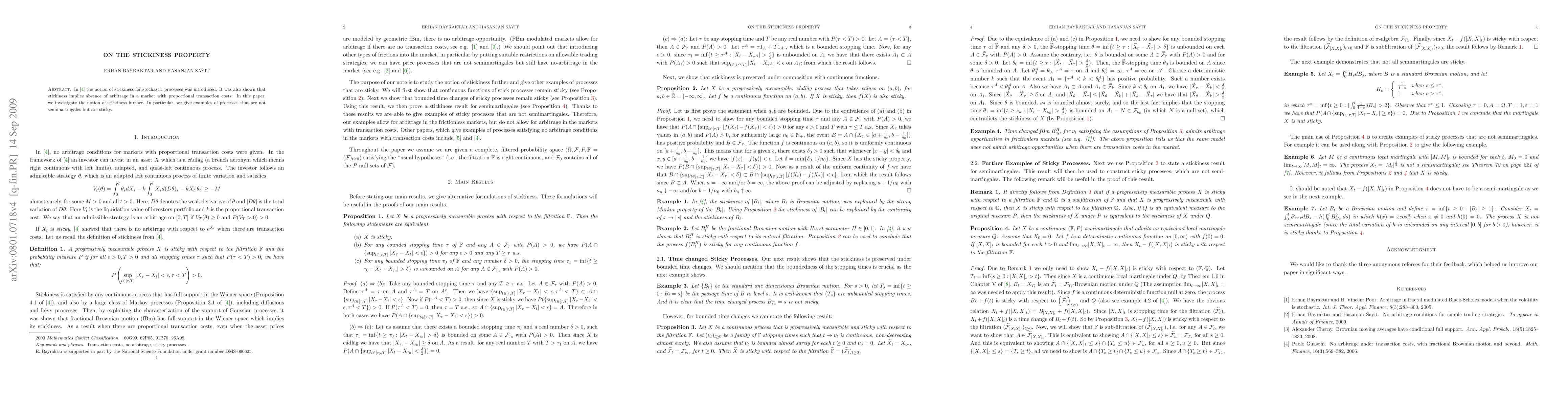 This paper explores the concept of stickiness in stochastic processes, demonstrating that stickiness prevents arbitrage in markets with proportional transaction costs. It provides examples of sticky processes that do not conform to the semimartingale framework.