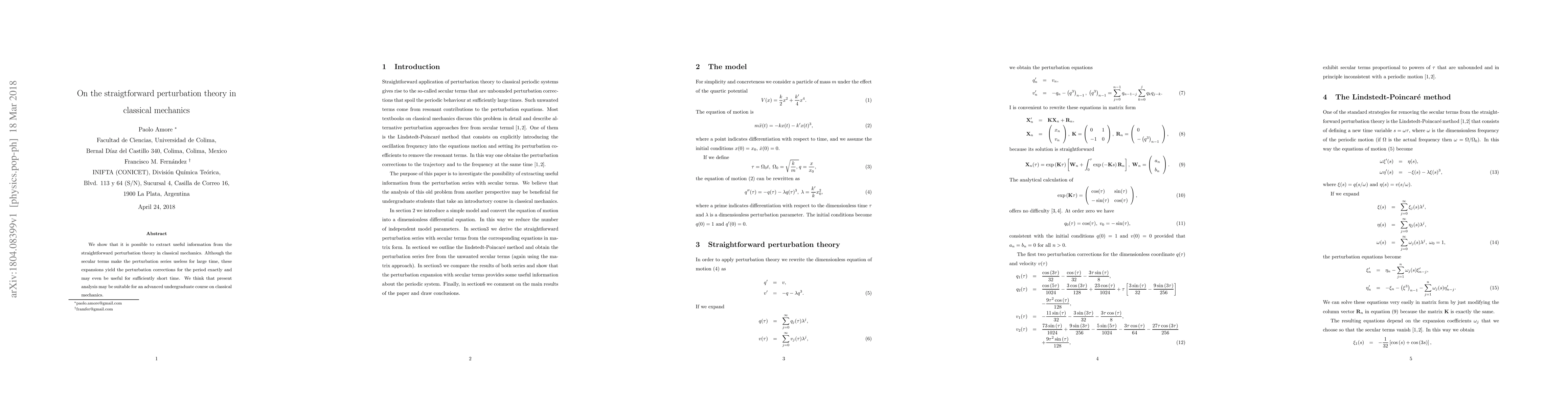 Summary: This paper demonstrates that straightforward perturbation theory in classical mechanics can provide precise period corrections despite secular terms rendering the series impractical for long times. It may still be valuable for short time intervals and could be beneficial for advanced undergraduate studies in classical mechanics.