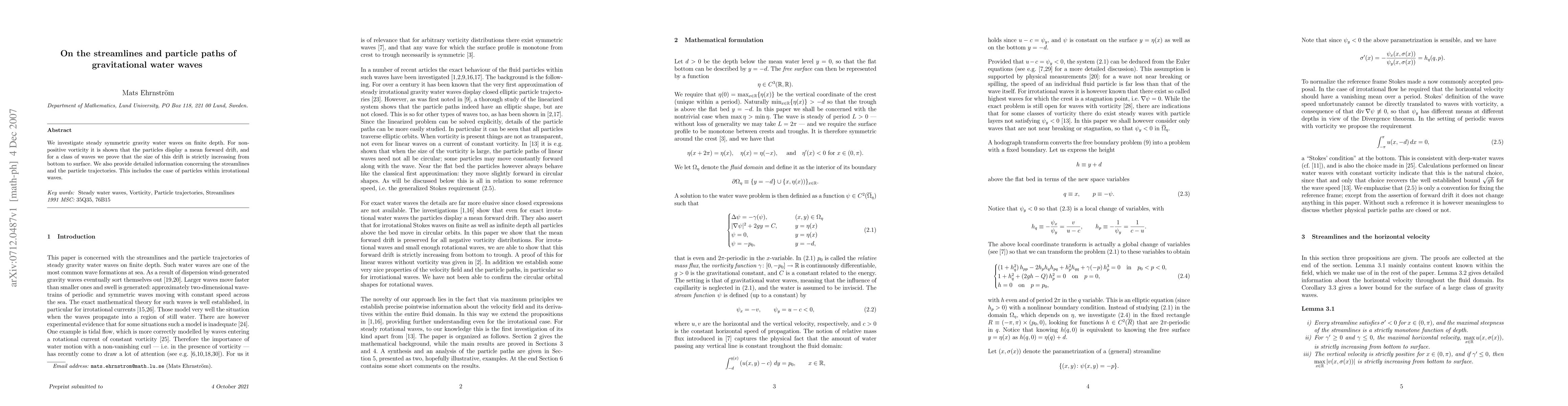 The paper studies steady gravity water waves with finite depth, revealing that particles in non-positive vorticity waves exhibit a mean forward drift. This drift increases from bottom to surface for certain wave types, with detailed analysis of streamlines and particle trajectories, including irrotational waves.