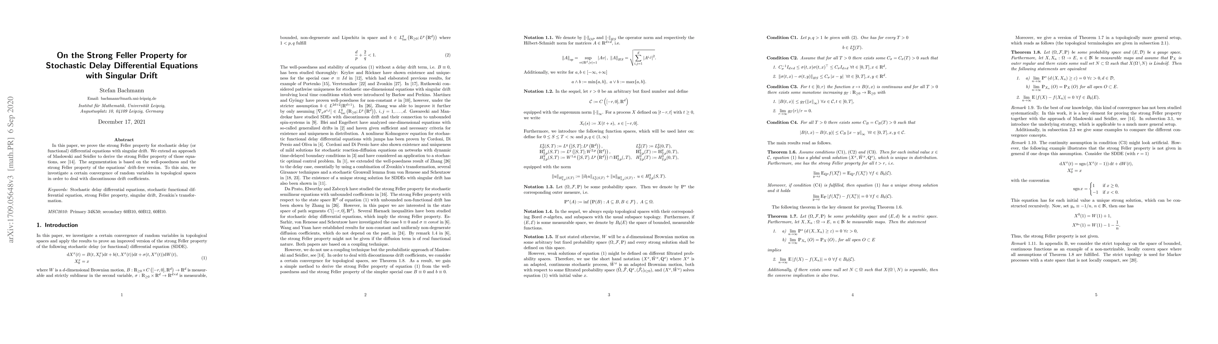 This paper proves the strong Feller property for stochastic delay differential equations with singular drift, extending previous work by Maslowski and Seidler. The proof leverages the well-posedness and strong Feller property of the drift-free version, addressing discontinuous drift coefficients through the convergence of random variables in topological spaces.