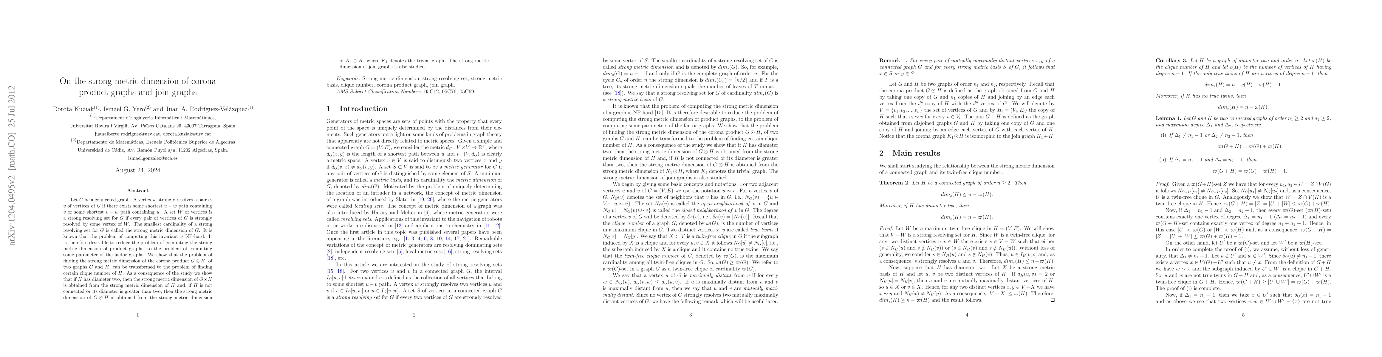 This paper investigates the strong metric dimension of corona product graphs and join graphs. It demonstrates how the strong metric dimension of a corona product can be derived from certain clique numbers of the factor graphs, and it provides conditions under which this dimension relates to the dimensions of the individual graphs or trivial graphs.