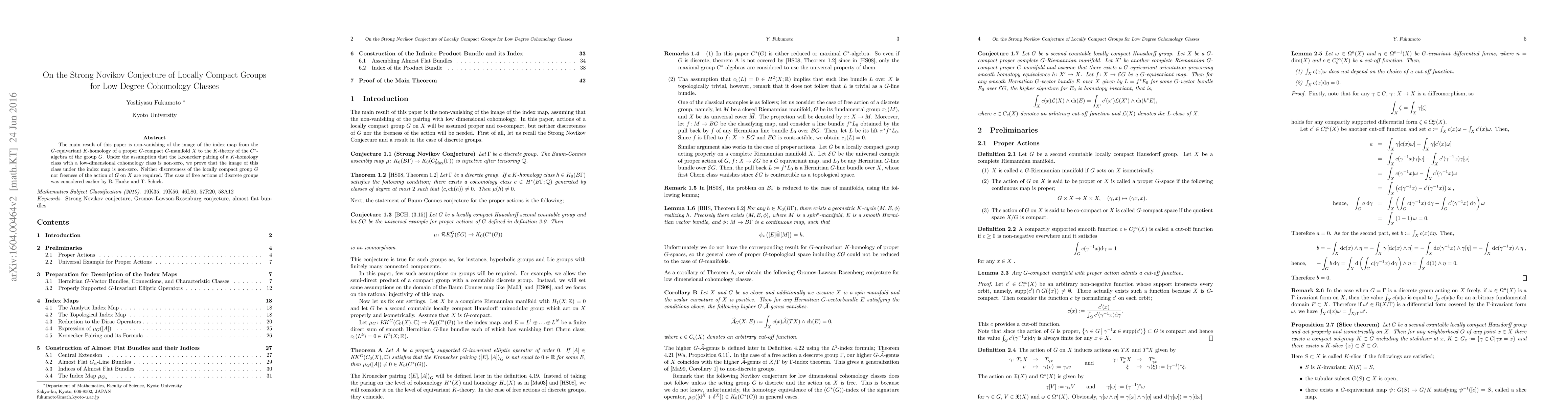 This paper proves that for a locally compact group acting on a proper manifold, certain cohomology classes produce non-vanishing images under the index map between K-homology and K-theory of the group algebra.