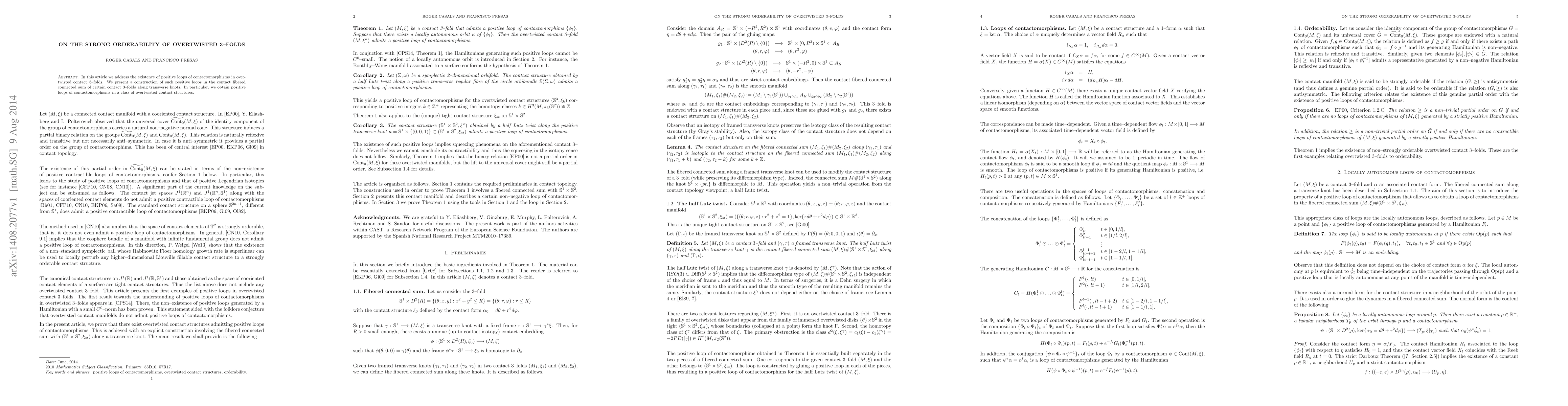 This paper demonstrates the existence of positive loops of contactomorphisms in overtwisted contact 3-folds, specifically in the contact fibered connected sum of certain contact 3-manifolds along transverse knots, thereby proving their strong orderability.