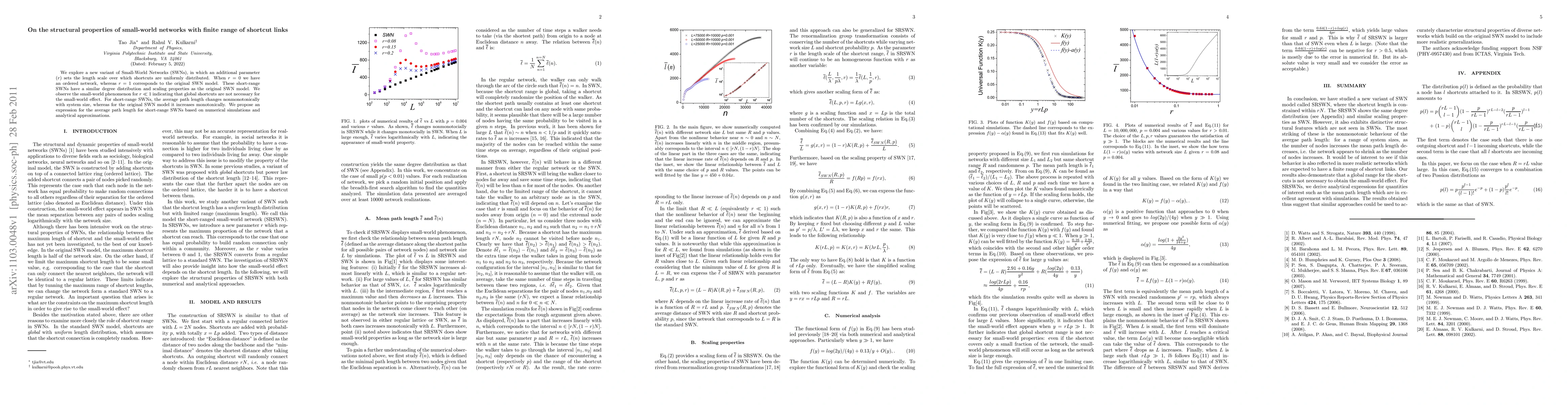 This paper investigates small-world networks with limited shortcut link ranges, finding that the small-world phenomenon persists even when shortcuts are restricted to short distances. It proposes an expression for the average path length based on simulations and analytical approximations.