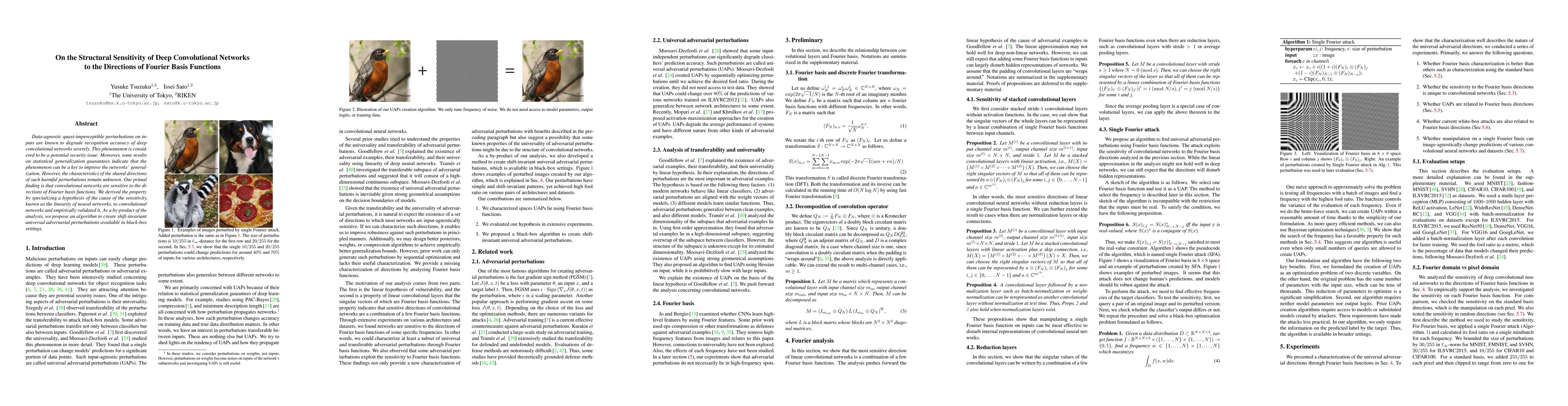 Deep convolutional networks are sensitive to the direction of Fourier basis functions, which can lead to severe degradation in recognition accuracy. An algorithm for creating shift-invariant universal adversarial perturbations is proposed as a by-product of the analysis.