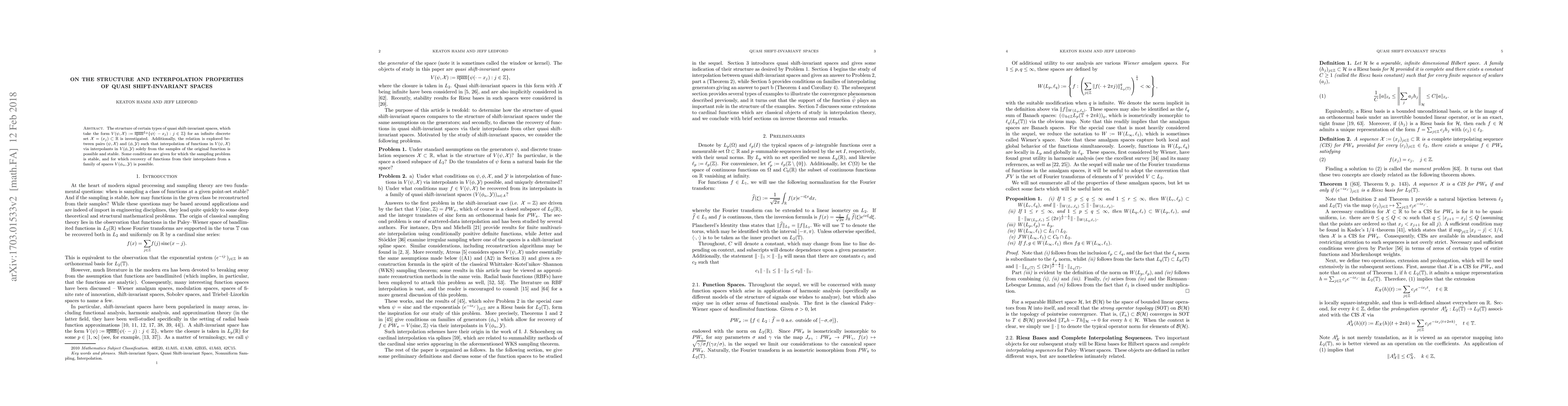 Researchers investigate the structure and interpolation properties of quasi shift-invariant spaces, exploring conditions for stable sampling and function recovery. They find specific criteria for stable sampling and propose solutions for recovering functions from their interpolants.