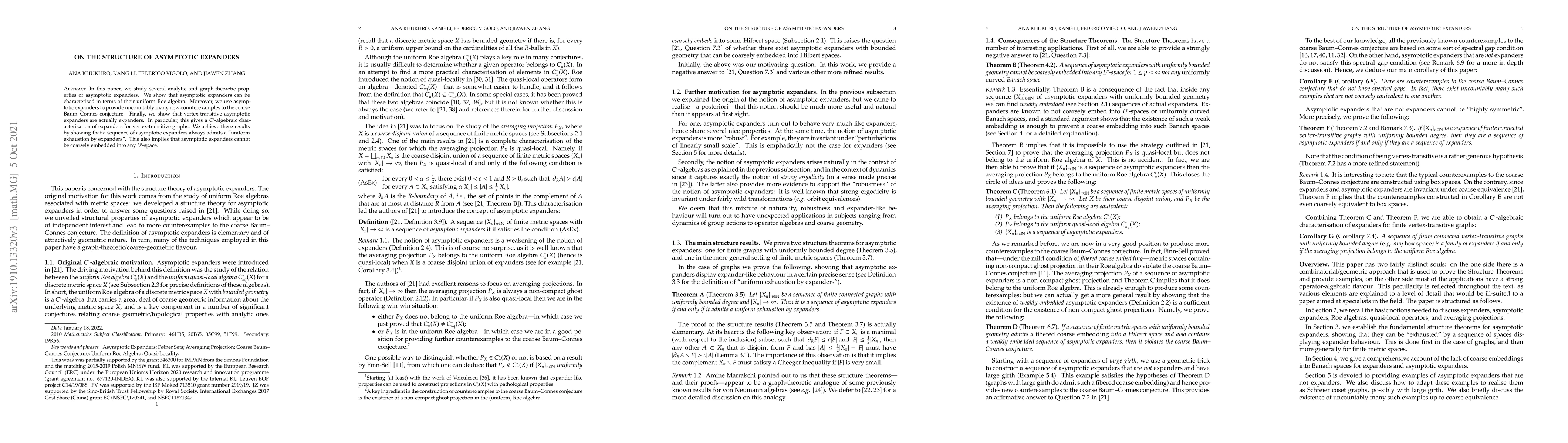 In this paper, we use geometric tools to study the structure of asymptotic expanders and show that a sequence of asymptotic expanders always admits a "uniform exhaustion by expanders". It follows that asymptotic expanders cannot be coarsely embedded into any $L^p$-space, and that asymptotic expanders can be characterised in terms of their uniform Roe algebra. Moreover, we provide uncountably many new counterexamples to the coarse Baum--Connes conjecture. These appear to be the first counterexamples that are not directly constructed by means of spectral gaps. Finally, we show that vertex-transitive asymptotic expanders are actually expanders. In particular, this gives a $C^*$-algebraic characterisation of expanders for vertex-transitive graphs.