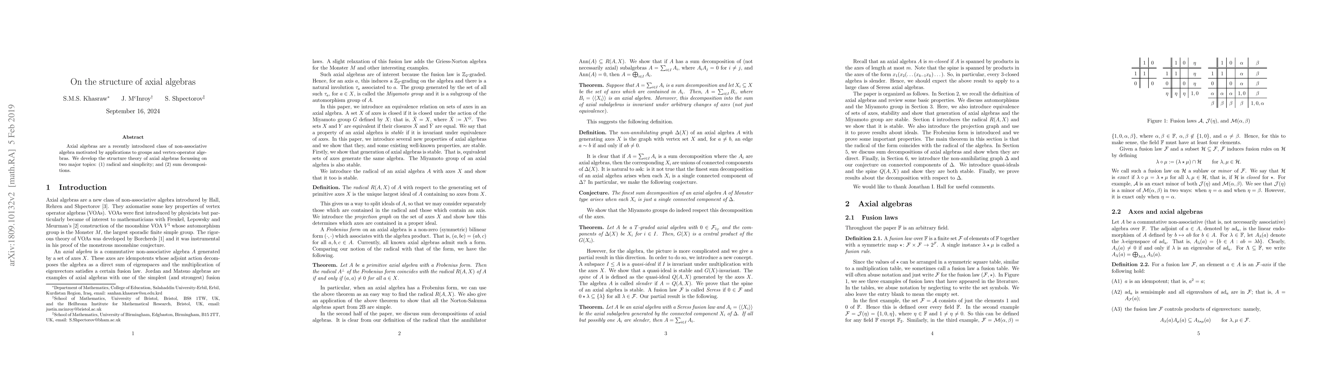 Researchers developed a structure theory for axial algebras, focusing on radical and simplicity, and sum decompositions, with implications for applications in group theory and vertex-operator algebras.