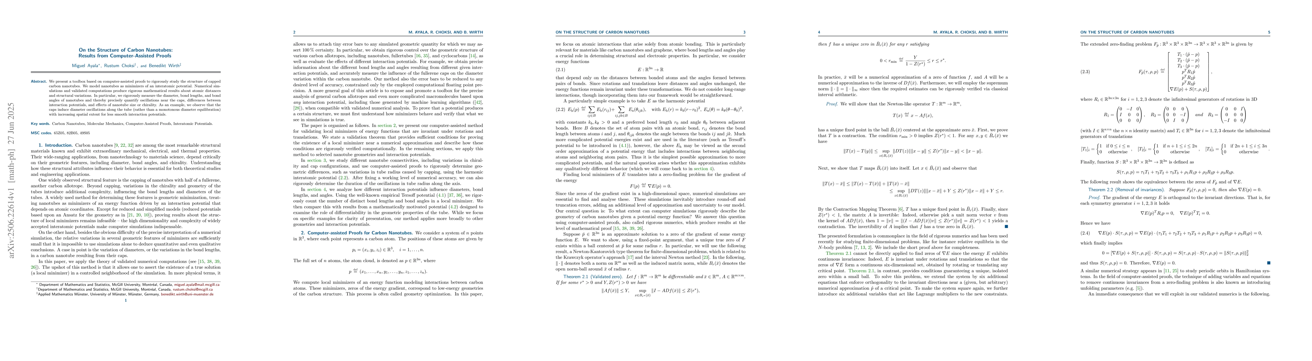 We present a toolbox based on computer-assisted proofs to rigorously study the structure of capped carbon nanotubes. We model nanotubes as minimizers of an interatomic potential. Numerical simulations and validated computations produce rigorous mathematical results about atomic distances and structural variations. In particular, we rigorously measure the diameter, bond lengths, and bond angles of nanotubes and thereby precisely quantify oscillations near the caps, differences between interaction potentials, and effects of nanotube size or chirality. As an example, we observe that the caps induce diameter oscillations along the tube (rather than a monotonous diameter equilibration) with increasing spatial extent for less smooth interaction potentials.