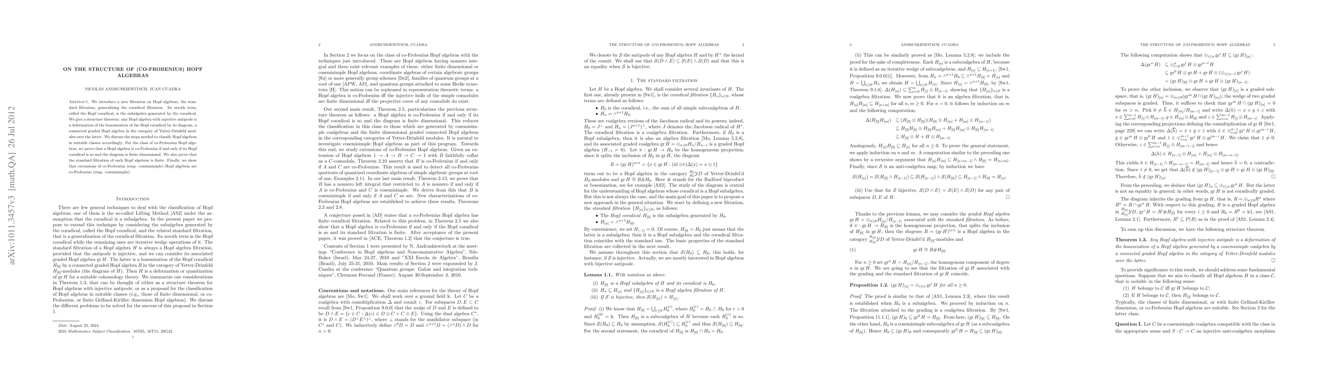 We introduce a new filtration on Hopf algebras, the standard filtration, generalizing the coradical filtration. Its zeroth term, called the Hopf coradical, is the subalgebra generated by the coradical. We give a structure theorem: any Hopf algebra with injective antipode is a deformation of the bosonization of the Hopf coradical by its diagram, a connected graded Hopf algebra in the category of Yetter-Drinfeld modules over the latter. We discuss the steps needed to classify Hopf algebras in suitable classes accordingly. For the class of co-Frobenius Hopf algebras, we prove that a Hopf algebra is co-Frobenius if and only if its Hopf coradical is so and the diagram is finite dimensional. We also prove that the standard filtration of such Hopf algebras is finite. Finally, we show that extensions of co-Frobenius (resp. cosemisimple) Hopf algebras are co-Frobenius (resp. cosemisimple).