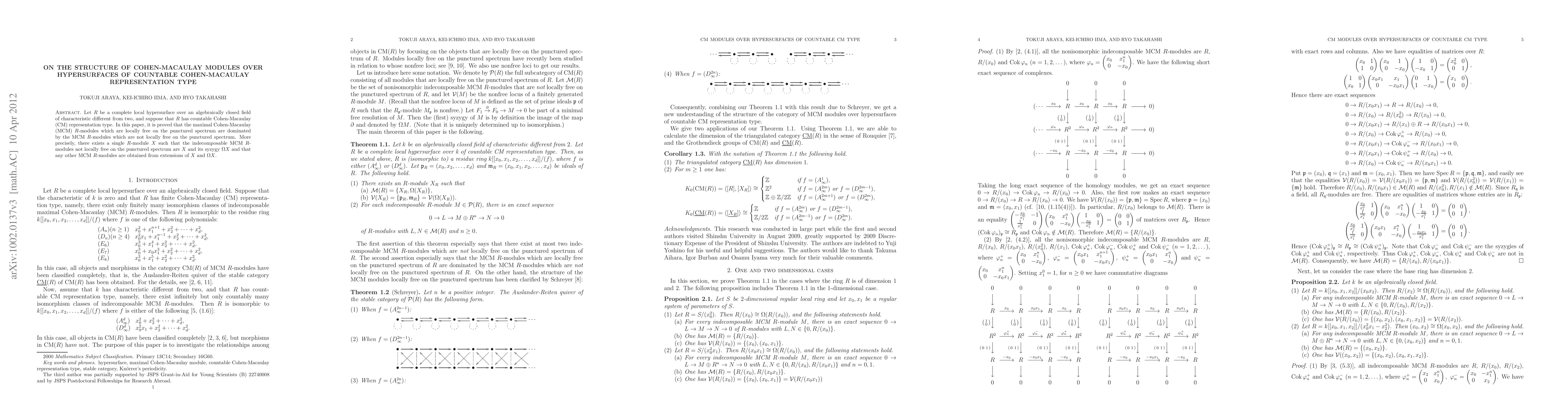 Let R be a complete local hypersurface over an algebraically closed field of characteristic different from two, and suppose that R has countable Cohen-Macaulay representation type. In this paper, it is proved that the maximal Cohen-Macaulay R-modules which are locally free on the punctured spectrum are dominated by the maximal Cohen-Macaulay R-modules which are not locally free on the punctured spectrum. More precisely, there exists a single R-module X such that the indecomposable maximal Cohen-Macaulay R-modules not locally free on the punctured spectrum are X and its syzygy \Omega X and that any other maximal Cohen-Macaulay R-module is obtained from some extension of X and \Omega X.