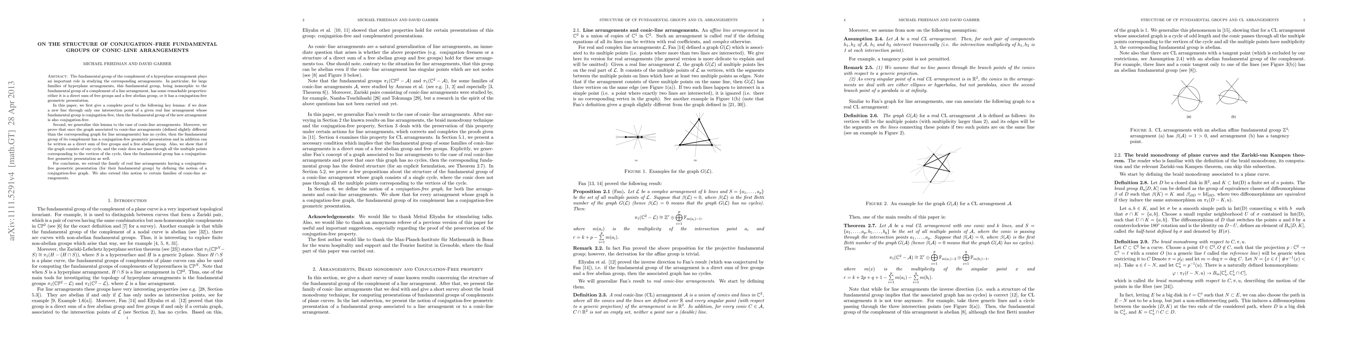 A new result on the conjugacy of conics and lines in CL arrangements was established, which has important implications for the study of these objects