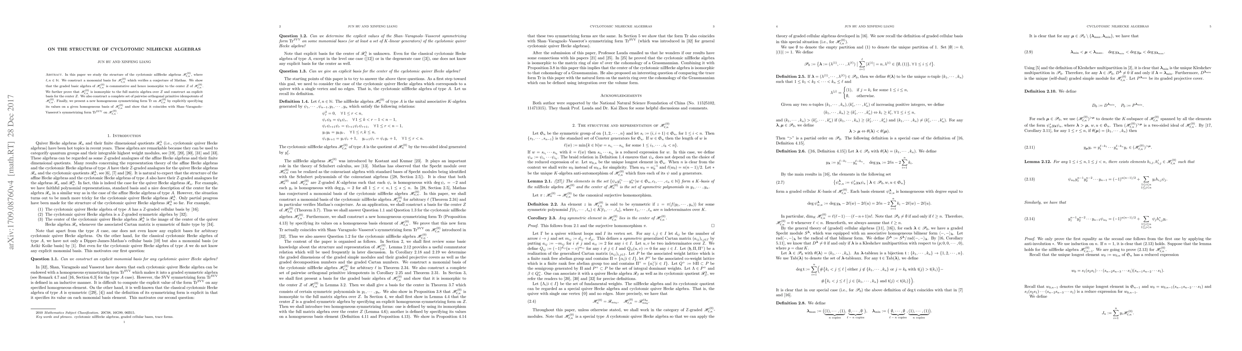 In this paper we study the structure of the cyclotomic nilHecke algebras $\HH_{\ell,n}^{(0)}$, where $\ell,n\in\N$. We construct a monomial basis for $\HH_{\ell,n}^{(0)}$ which verifies a conjecture of Mathas. We show that the graded basic algebra of $\HH_{\ell,n}^{(0)}$ is commutative and hence isomorphic to the center $Z$ of $\HH_{\ell,n}^{(0)}$. We further prove that $\HH_{\ell,n}^{(0)}$ is isomorphic to the full matrix algebra over $Z$ and construct an explicit basis for the center $Z$. We also construct a complete set of pairwise orthogonal primitive idempotents of $\HH_{\ell,n}^{(0)}$. Finally, we present a new homogeneous symmetrizing form $\Tr$ on $\HH_{\ell,n}^{(0)}$ by explicitly specifying its values on a given homogeneous basis of $\HH_{\ell,n}^{(0)}$ and show that it coincides with Shan--Varagnolo--Vasserot's symmetrizing form $\Tr^{\text{SVV}}$ on $\HH_{\ell,n}^{(0)}$.