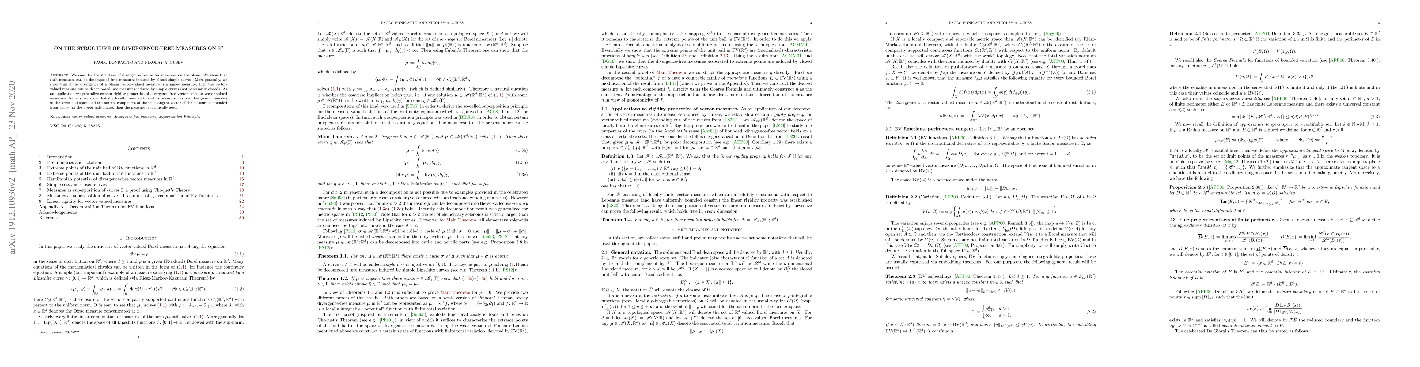 Researchers show that divergence-free vector measures on the plane can be decomposed into measures induced by simple curves, with applications to rigidity properties of such measures.