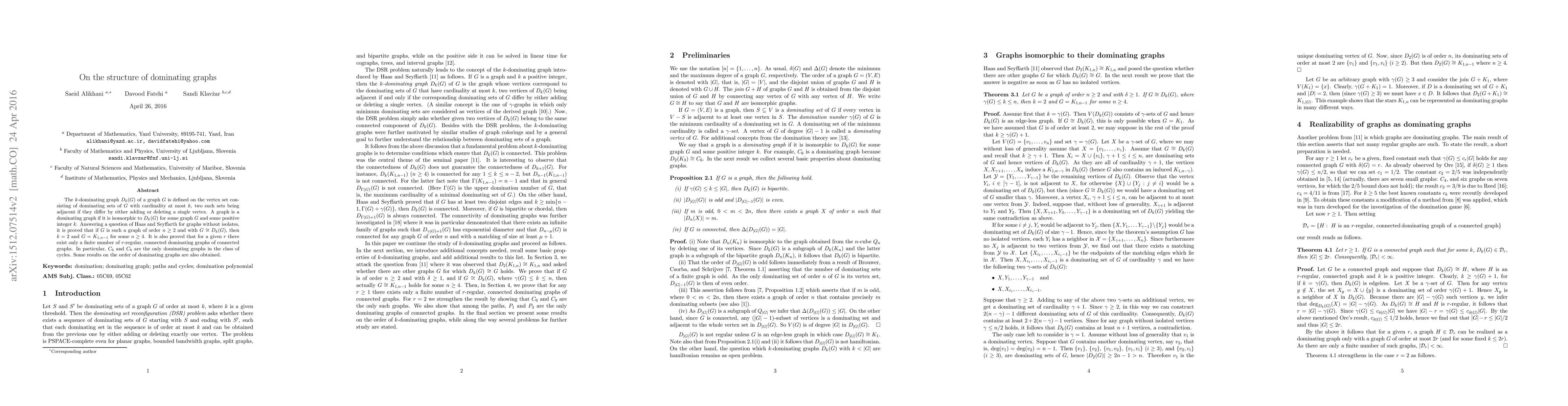 Researchers discovered that for a graph to be isomorphic to its own k-dominating graph, it must have only two dominating sets with up to 2 vertices, implying a very specific structure. This limits the number of possible dominant graphs in certain classes.