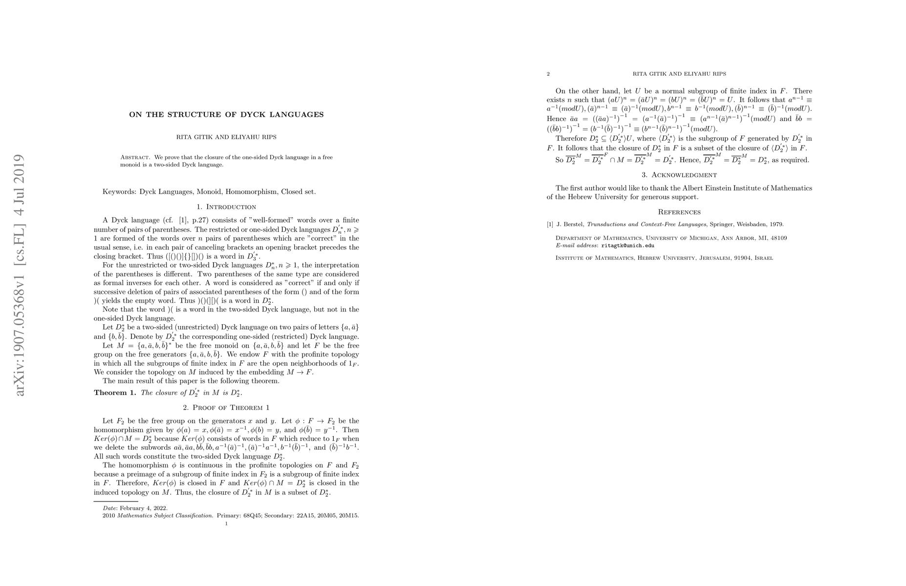 We prove that the closure of the one-sided Dyck language in a free monoid is a two-sided Dyck language.