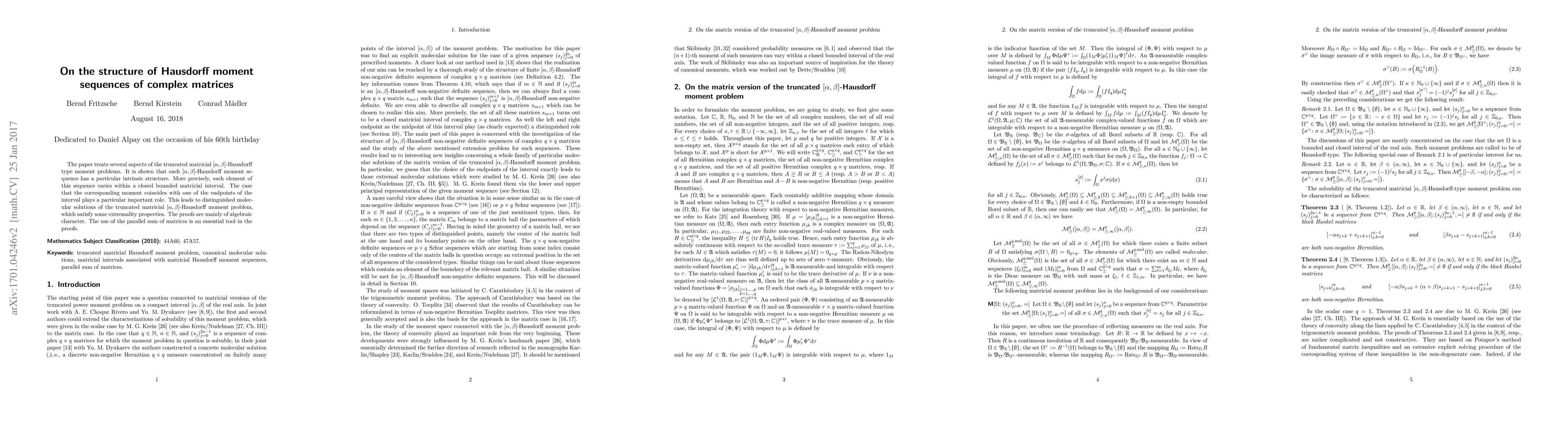 The paper explores the intrinsic structure of $[\alpha,\beta]$-Hausdorff moment sequences for complex matrices, demonstrating that each element lies within a closed bounded matricial interval, with special significance given to moments coinciding with interval endpoints. This leads to extremal molecular solutions of the associated moment problem, with proofs relying heavily on algebraic techniques and the parallel sum of matrices.