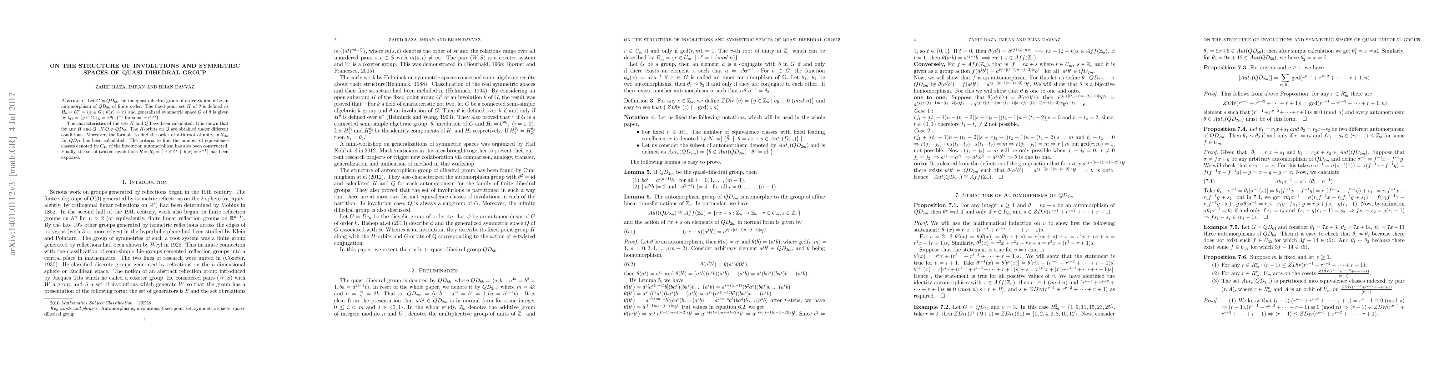 This paper investigates the structure of the quasi-dihedral group $QD_{8k}$ and its automorphisms, focusing on the fixed-point set $H$ and generalized symmetric space $Q$ under an automorphism $\theta$. It demonstrates that $H$ and $Q$ do not cover the full group and explores the orbits of $H$ on $Q$, the order of $v$-th roots of unity in $\mathbb{Z}_{2k}$, and the equivalence classes of involution automorphisms.