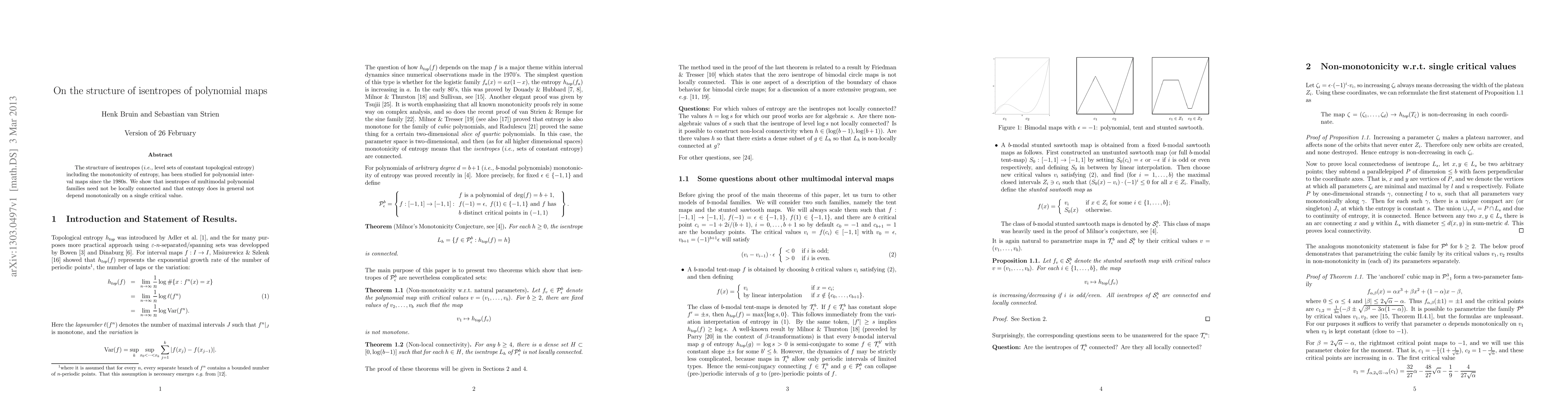 The structure of isentropes (i.e. level sets of constant topological entropy) including the monotonicity of entropy, has been studied for polynomial interval maps since the 1980s. We show that isentropes of multimodal polynomial families need not be locally connected and that entropy does in general not depend monotonically on a single critical value.
