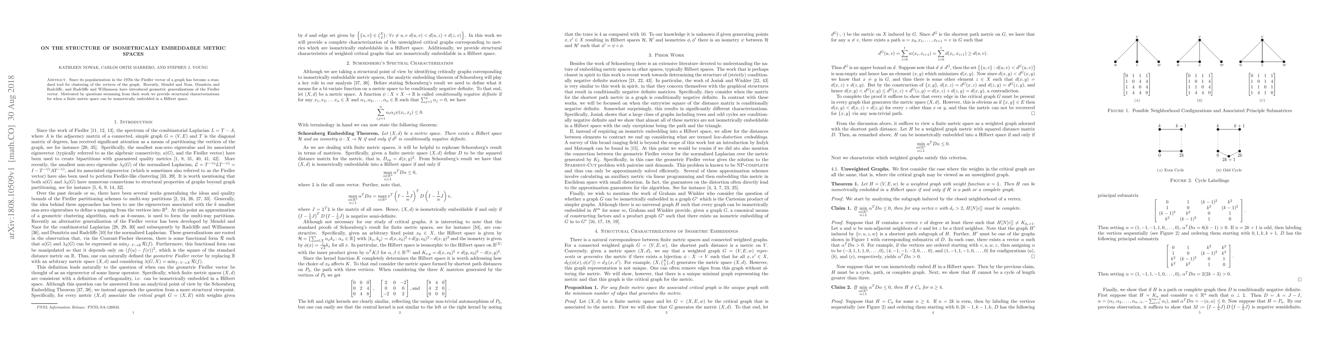 Researchers provide structural characterizations for when a finite metric space can be isometrically embedded in a Hilbert space, building on previous work on geometric generalizations of the Fiedler vector.