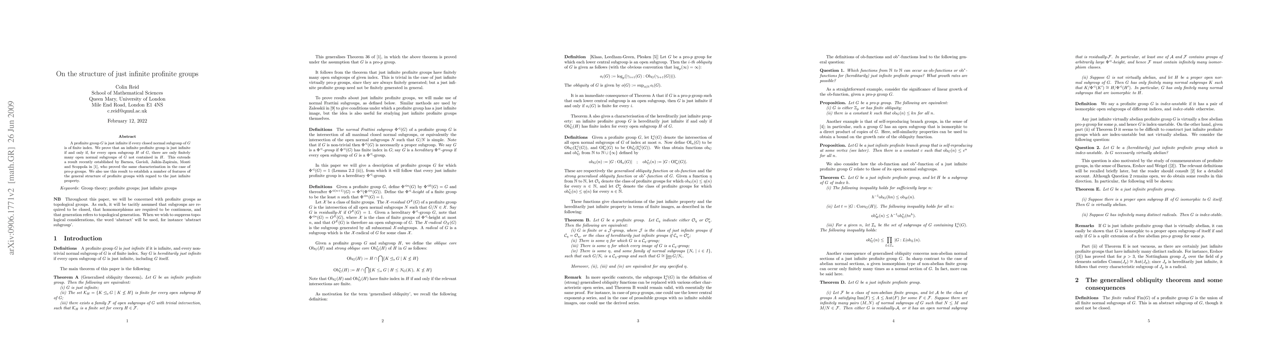 The paper introduces a novel characterization of just infinite profinite groups using open subgroups and normal subgroups, extending previous results for pro-p groups.