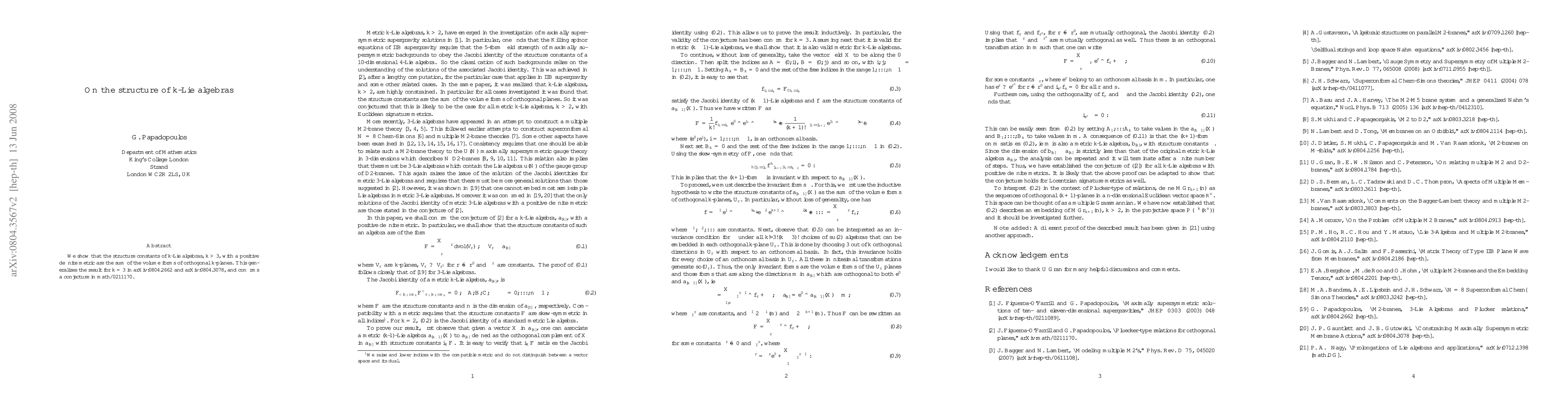 The paper demonstrates that the structure constants of $k$-Lie algebras ($k>3$) with a positive definite metric can be expressed as the sum of volume forms of orthogonal $k$-planes, generalizing previous results for $k=3$ and confirming a long-standing conjecture.