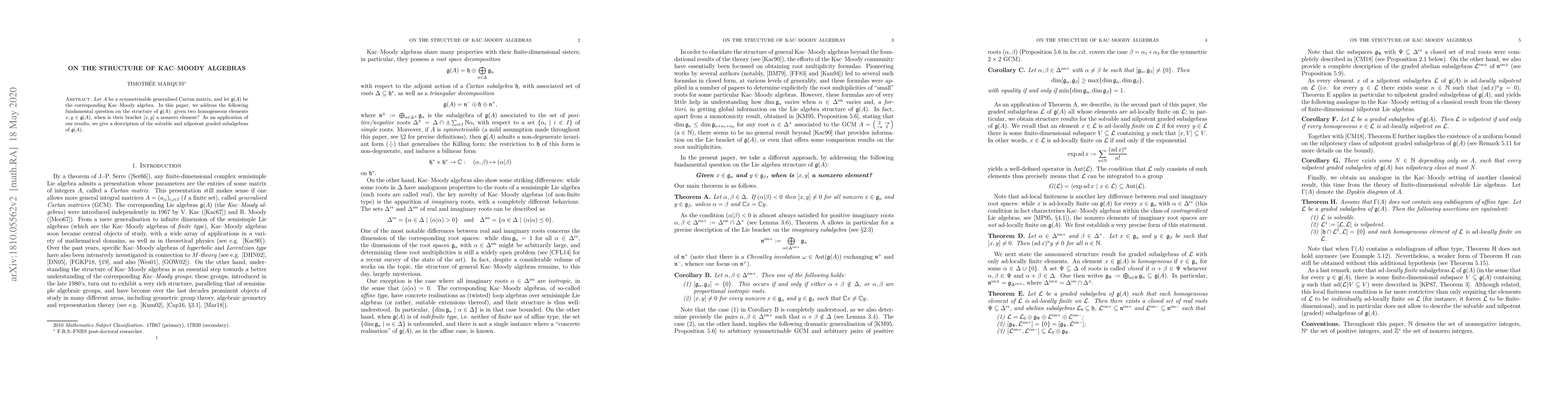 Let $A$ be a symmetrisable generalised Cartan matrix, and let $\mathfrak g(A)$ be the corresponding Kac-Moody algebra. In this paper, we address the following fundamental question on the structure of $\mathfrak g(A)$: given two homogeneous elements $x,y \in \mathfrak g(A)$, when is their bracket $[x,y]$ a nonzero element? As an application of our results, we give a description of the solvable and nilpotent graded subalgebras of $\mathfrak g(A)$.