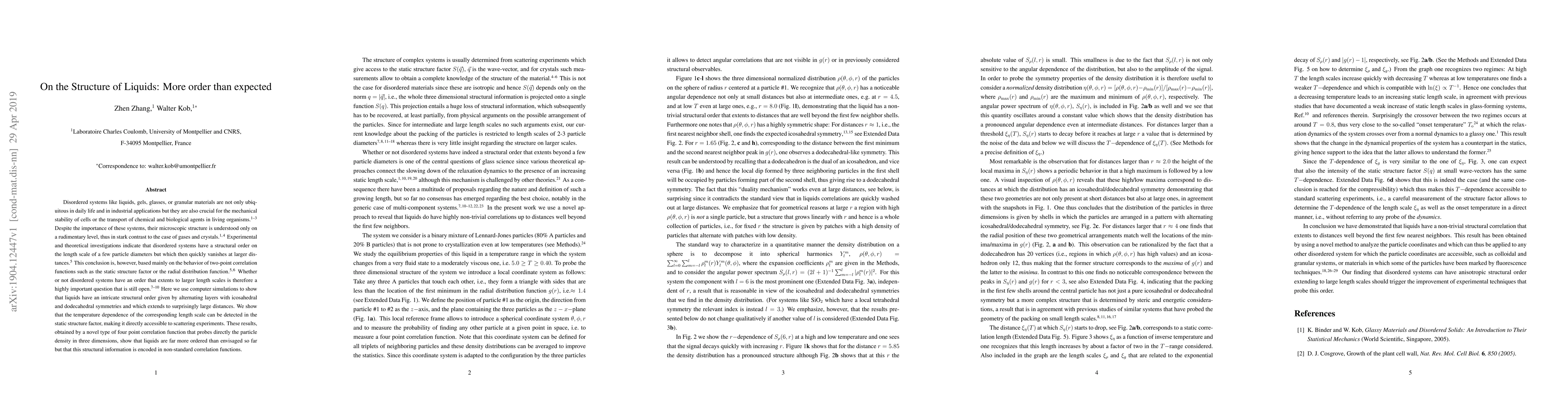 Disordered systems like liquids, gels, glasses, or granular materials are not only ubiquitous in daily life and in industrial applications but they are also crucial for the mechanical stability of cells or the transport of chemical and biological agents in living organisms [1-3]. Despite the importance of these systems, their microscopic structure is understood only on a rudimentary level, thus in stark contrast to the case of gases and crystals [1,4]. Experimental and theoretical investigations indicate that disordered systems have a structural order on the length scale of a few particle diameters but which then quickly vanishes at larger distances [5]. This conclusion is, however, based mainly on the behavior of two-point correlation functions such as the static structure factor or the radial distribution function [5.6]. Whether or not disordered systems have an order that extents to larger length scales is therefore a highly important question that is still open [7-10]. Here we use computer simulations to show that liquids have an intricate structural order given by alternating layers with icosahedral and dodecahedral symmetries and which extends to surprisingly large distances. We show that the temperature dependence of the corresponding length scale can be detected in the static structure factor, making it directly accessible to scattering experiments. These results, obtained by a novel type of four point correlation function that probes directly the particle density in three dimensions, show that liquids are far more ordered than envisaged so far but that this structural information is encoded in non-standard correlation functions.