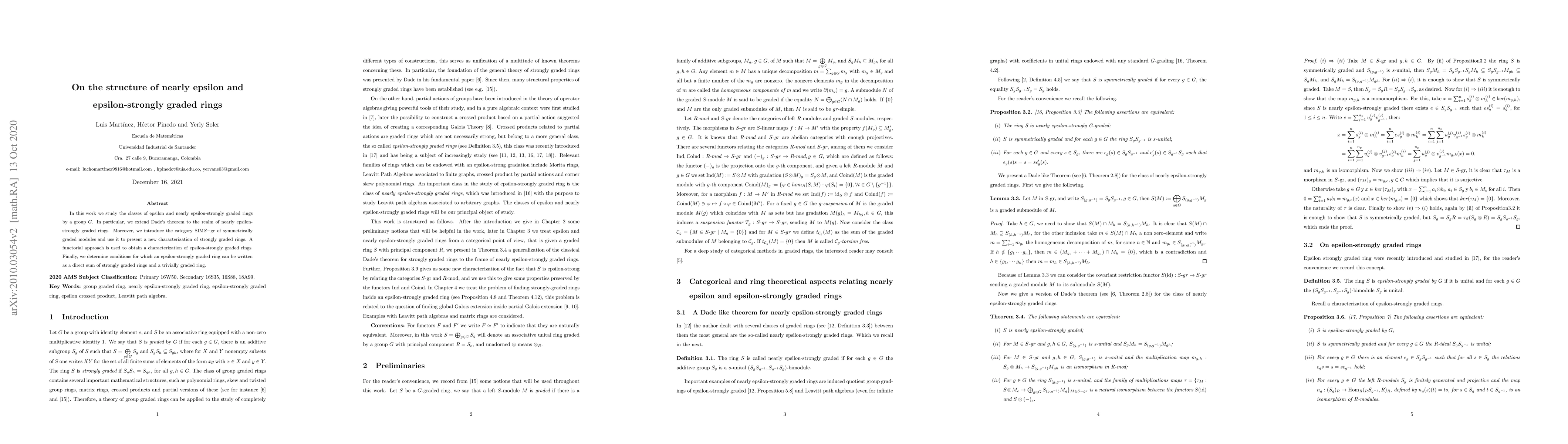 This paper investigates epsilon and nearly epsilon-strongly graded rings by a group $G$, extending Dade's theorem and introducing a new characterization of strongly graded rings through the category SIM$S-$gr of symmetrically graded modules. The study also determines conditions under which an epsilon-strongly graded ring can be decomposed into a direct sum of strongly graded and trivially graded rings.