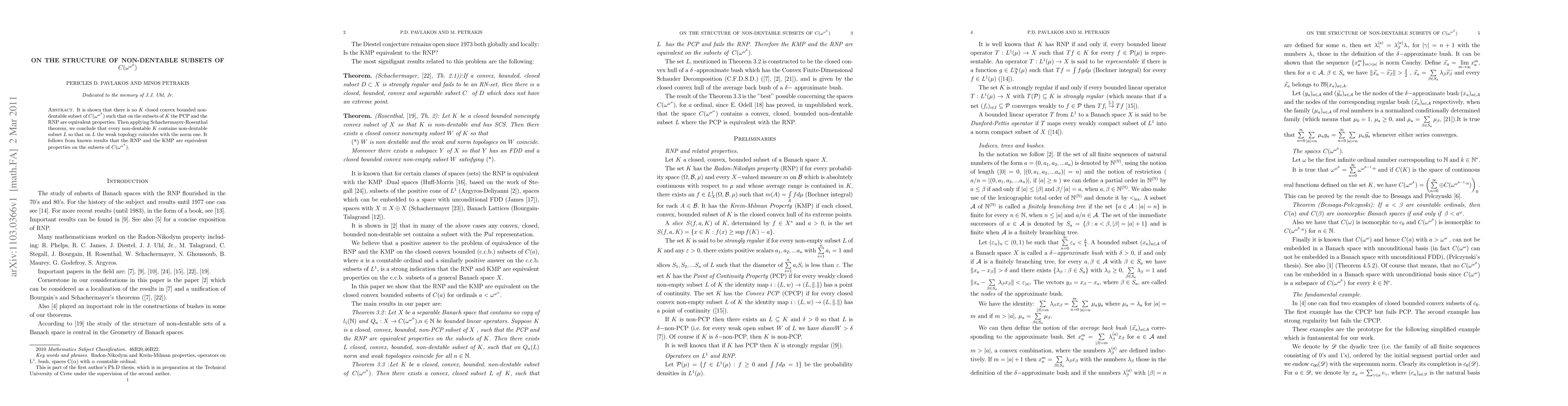 The paper demonstrates that no K, a closed, convex, bounded subset of C({omega}^{omega} ^k), can be non-dentable with PCP and RNP equivalence. Using Schachermayer-Rosenthal theorem, it's proven that non-dentable K includes a subset L where weak topology matches norm one. Also, RNP and KMP are equivalent on subsets of C({omega}^{omega} ^k).