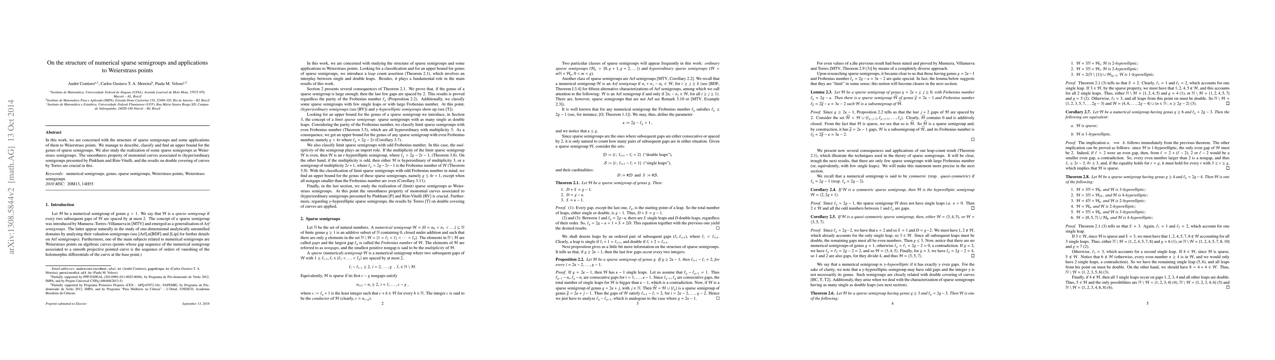 Summary: This paper explores the structure and classification of numerical sparse semigroups, establishing an upper bound for their genus and connecting them to Weierstrass points, leveraging key results from Pinkham, Rim-Vitulli, and Torres on monomial curves and double coverings.