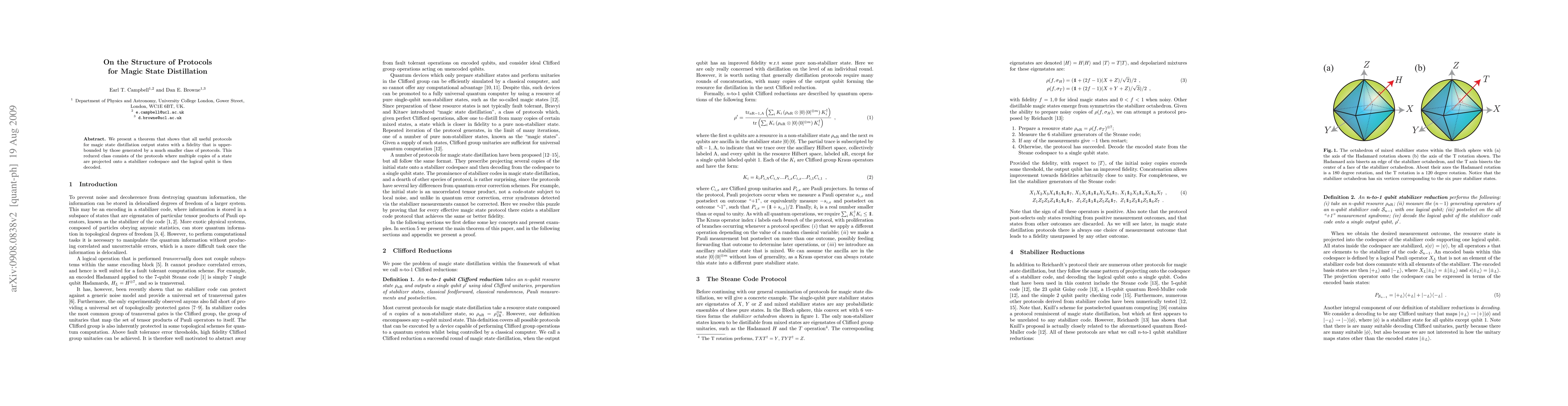 We present a theorem that shows that all useful protocols for magic state distillation output states with a fidelity that is upper-bounded by those generated by a much smaller class of protocols. This reduced class consists of the protocols where multiple copies of a state are projected onto a stabilizer codespace and the logical qubit is then decoded.